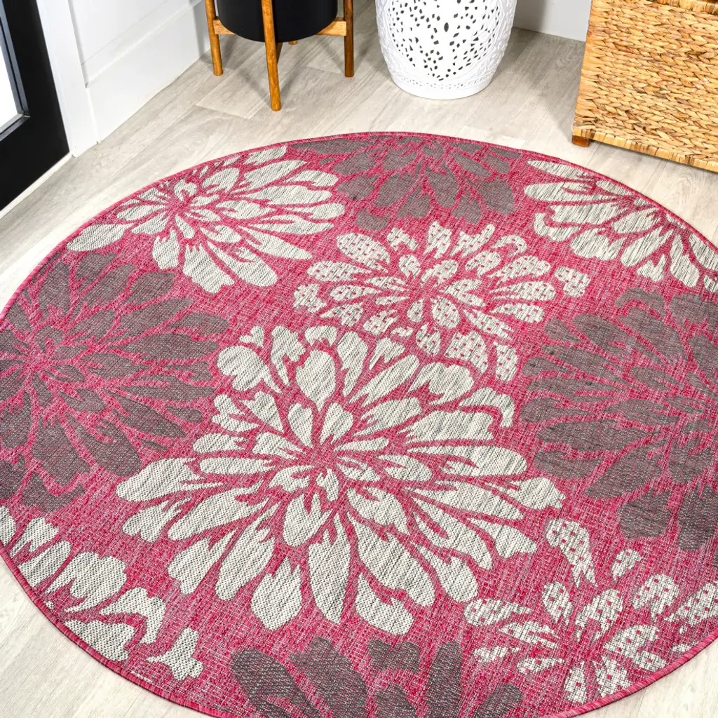 Zinnia Modern Floral Textured Weave Indoor/outdoor, Fuchsia/light Gray, 5' Round