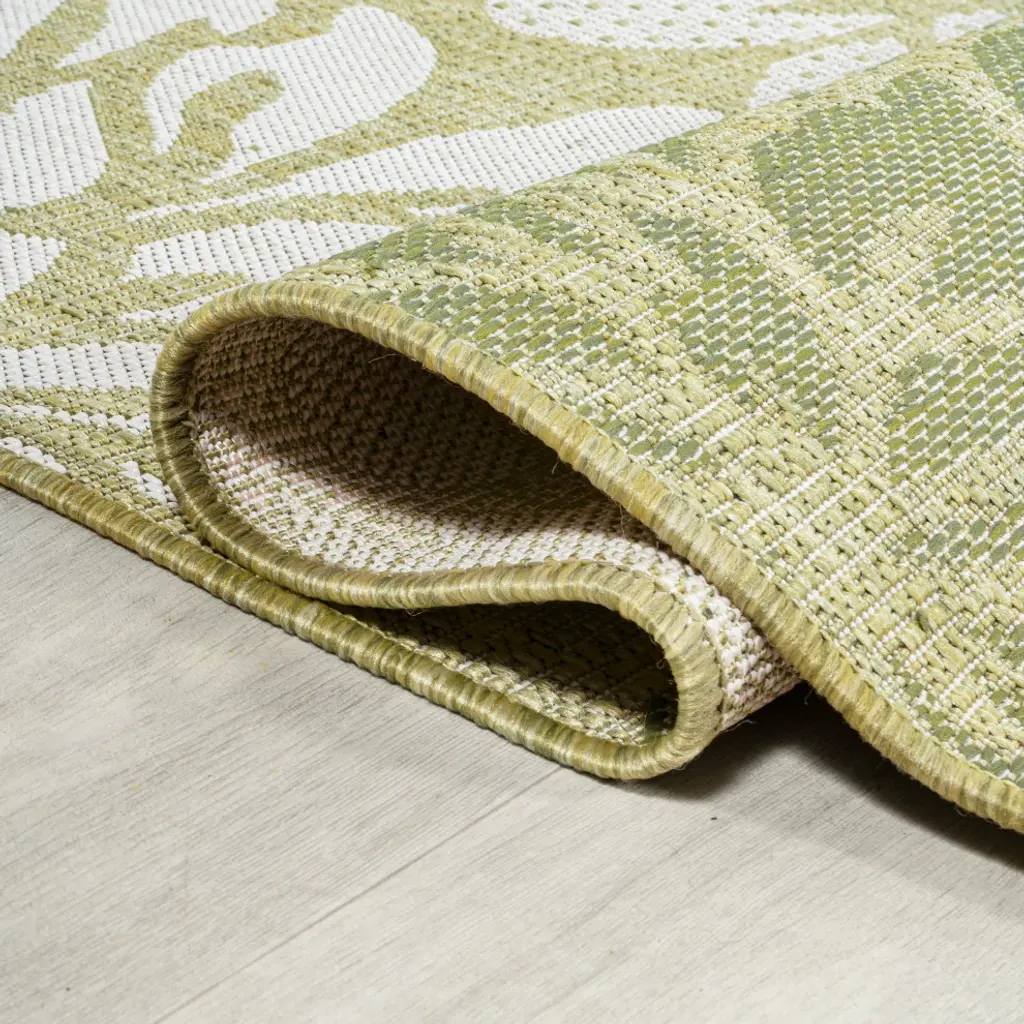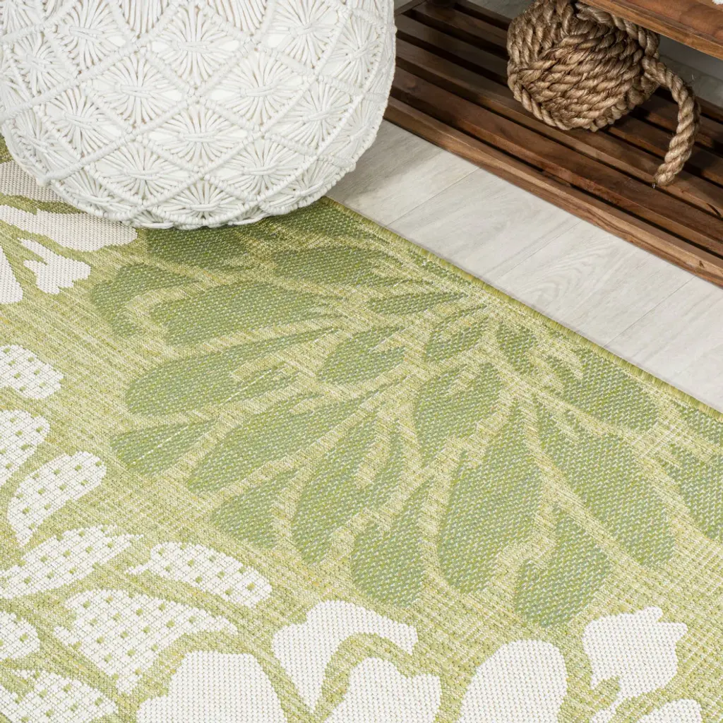 Zinnia Modern Floral Textured Weave Indoor/outdoor, Green/cream, 9X12