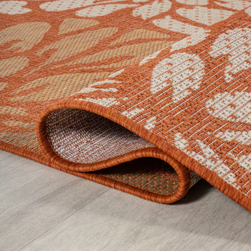 Zinnia Modern Floral Textured Weave Indoor/outdoor, Orange/cream, 2X10
