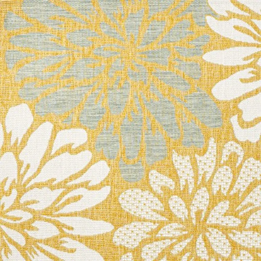 Zinnia Modern Floral Textured Weave Indoor/outdoor, Yellow/cream, 2X8