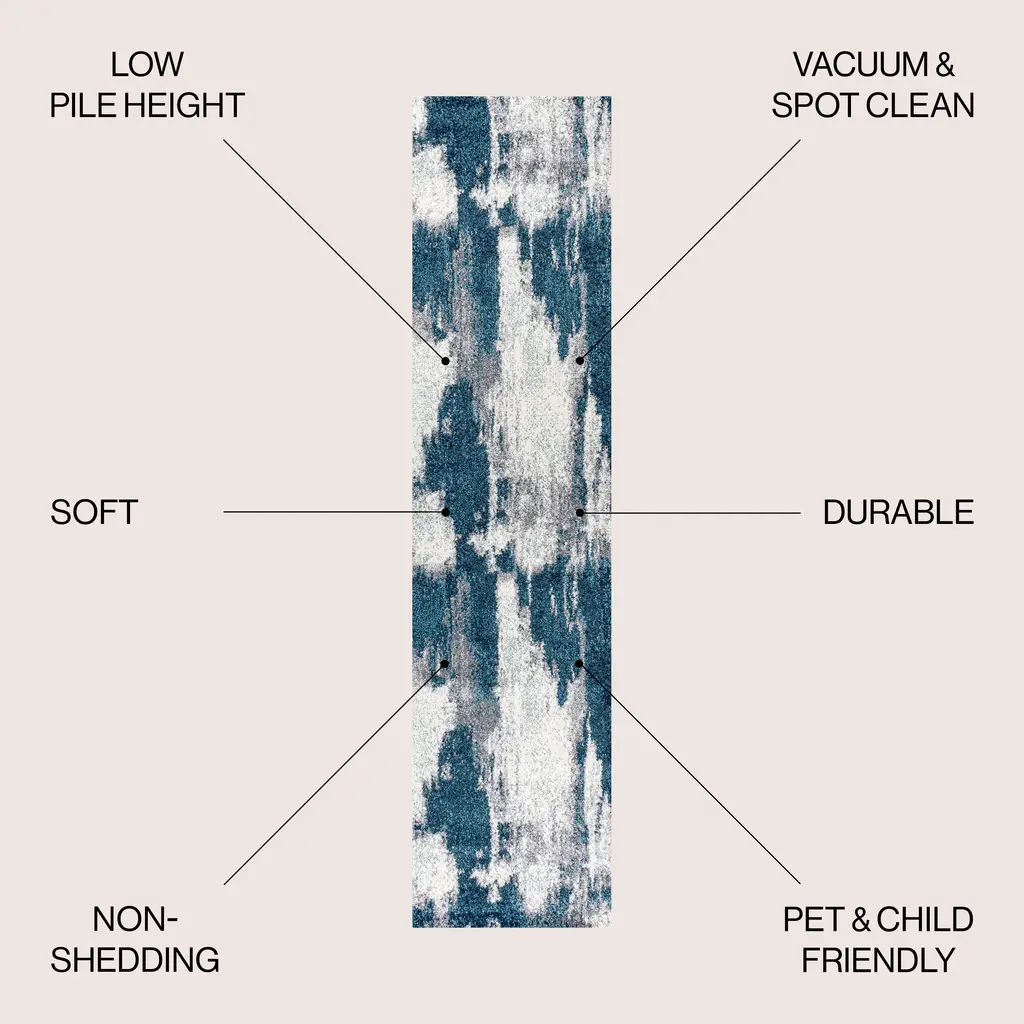 Our artsy, abstract rug is inspired by bold, modern paintings. Durable synthetic fibers and a busy pattern make this rug is ideal for homes with kids and pets. It's also the perfect centerpiece for a coastal or industrial interior.