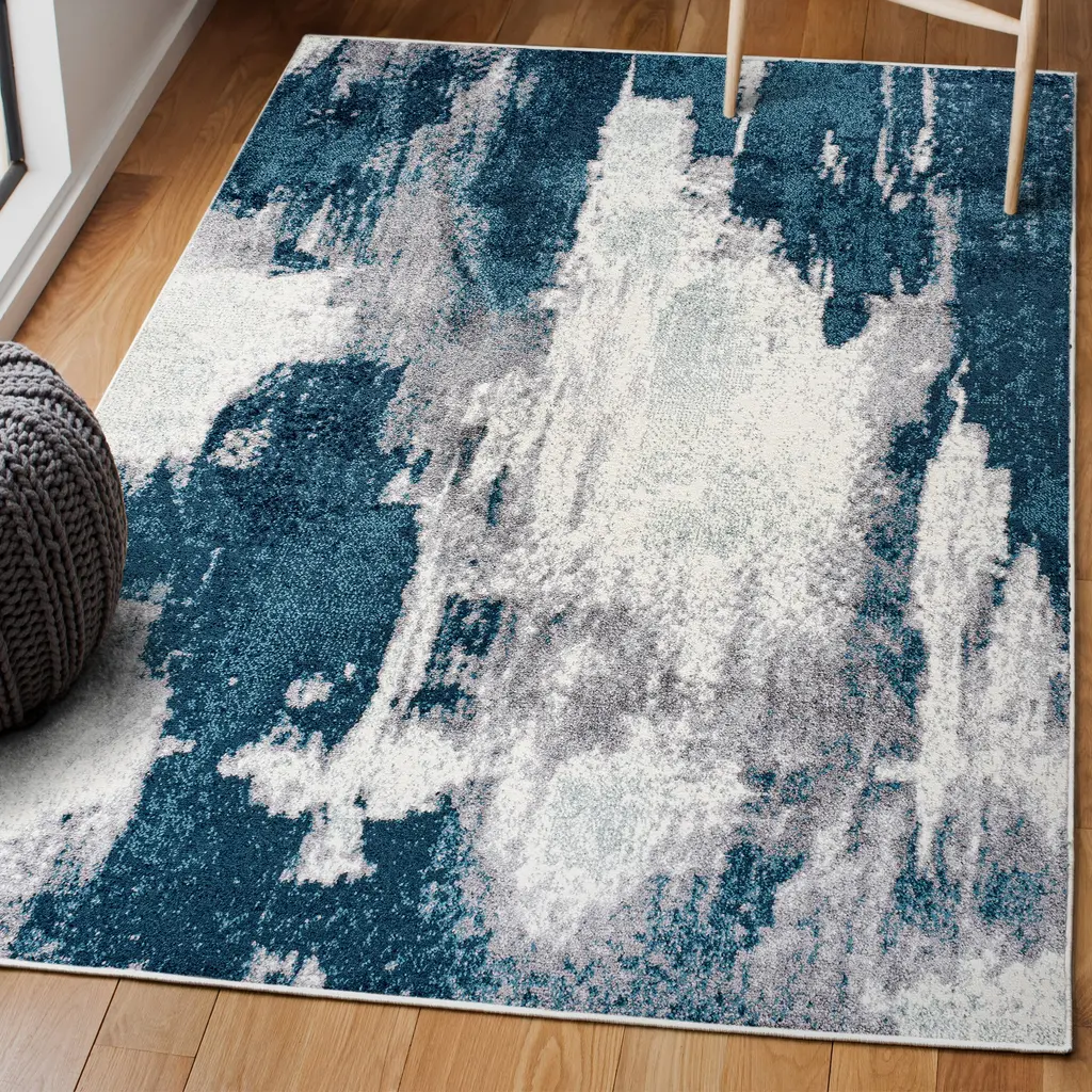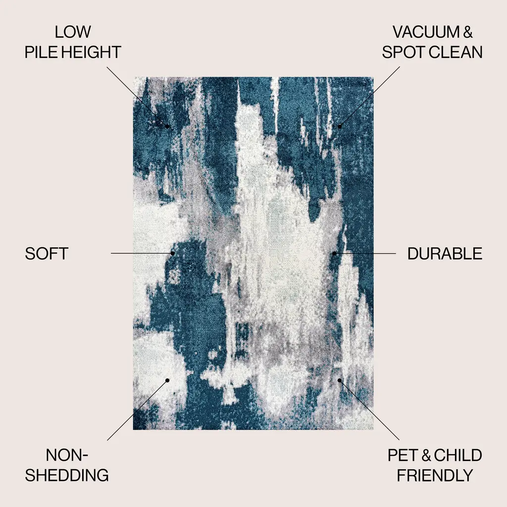 Our artsy, abstract rug is inspired by bold, modern paintings. Durable synthetic fibers and a busy pattern make this rug is ideal for homes with kids and pets. It's also the perfect centerpiece for a coastal or industrial interior.