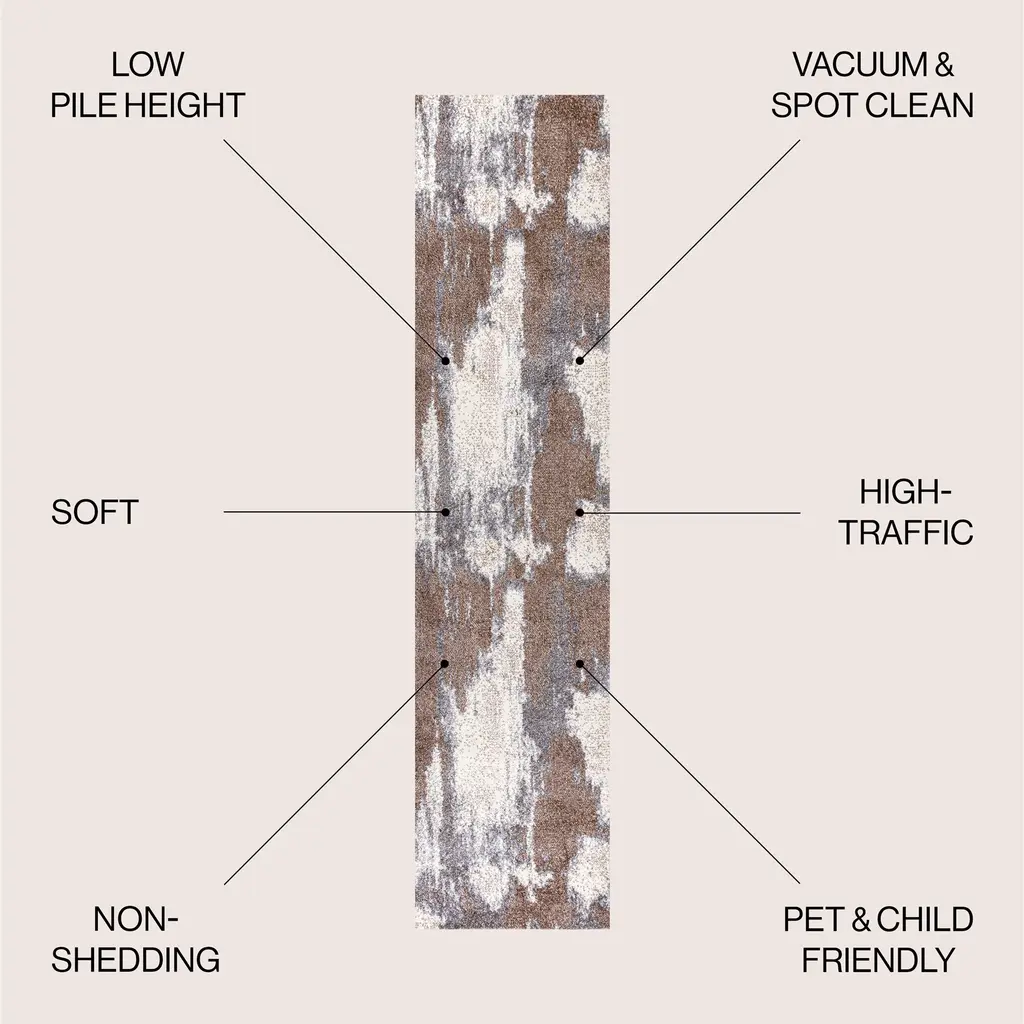 Zoe Contemporary Bohemian Abstract Marble Area Rug - Brown / 2 X 8