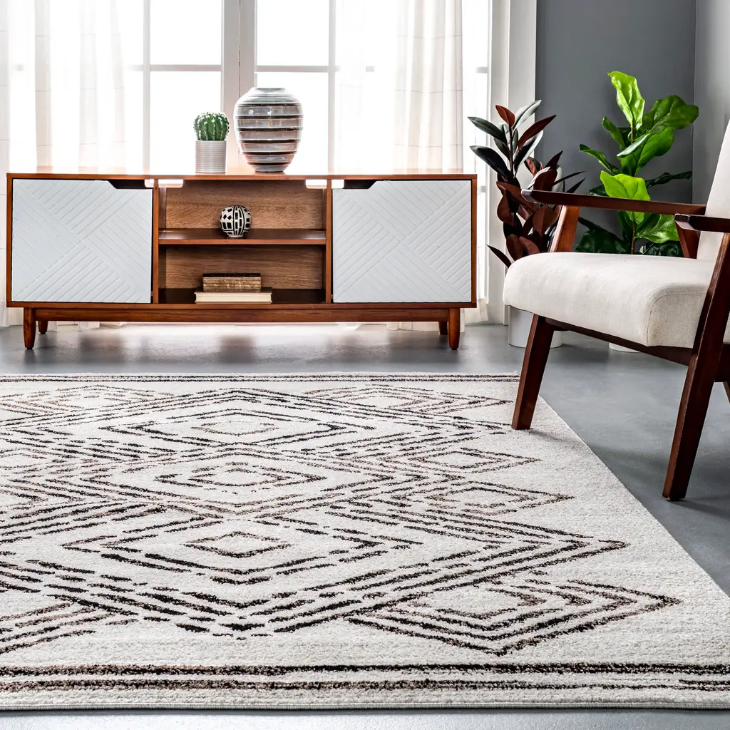 Zoe Diamond Geometric Rug | Beige - 4' X 6'