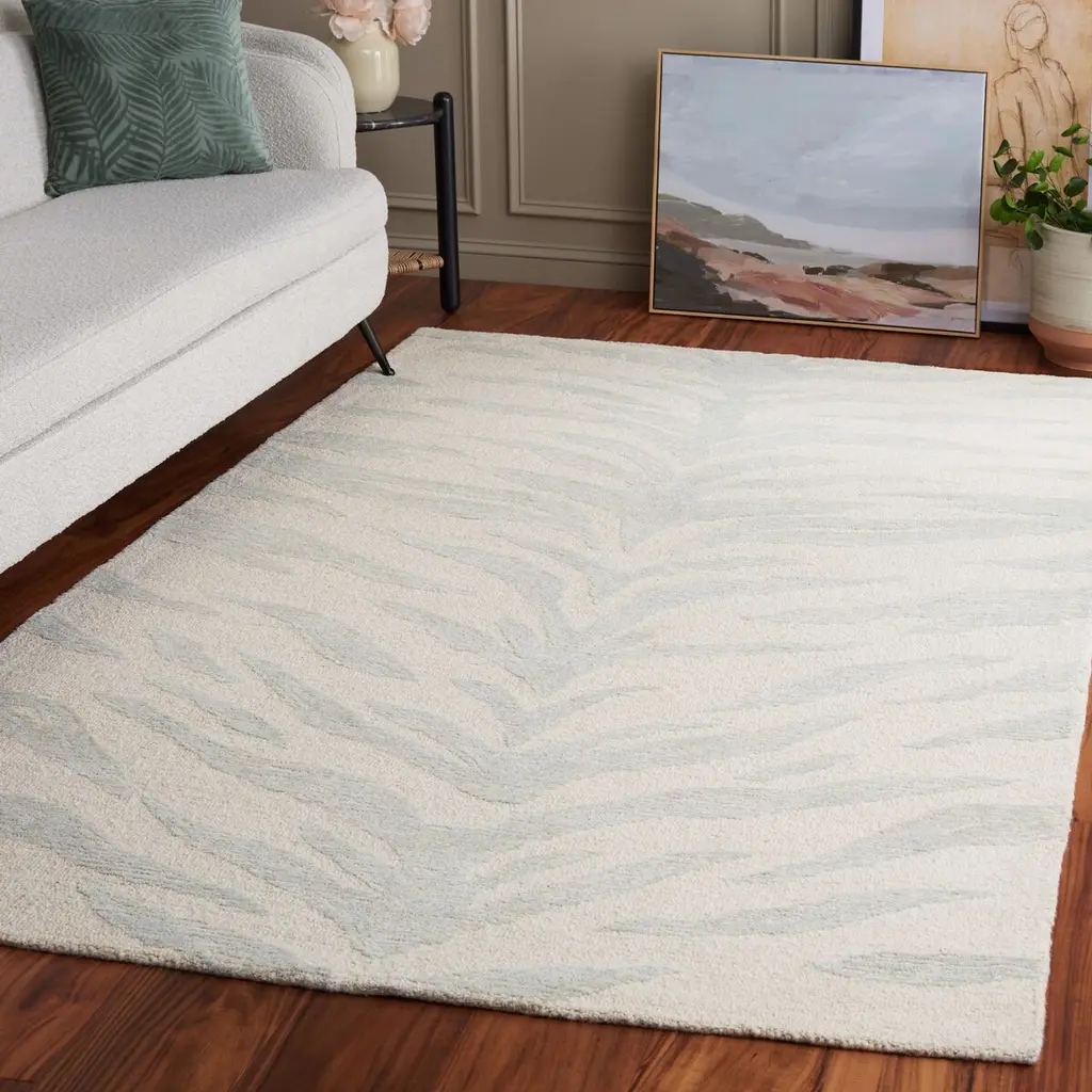 Introducing our exquisite Hand-Tufted Area Rug, a perfect blend of luxury and craftsmanship to enhance your home decor. This 3' x 5' small rectangle rug, featuring a plush 3/8" pile height, is masterfully created using a hand-tufted technique that ensures durability and comfort underfoot. The rug is composed of a superior mix of 80% Wool and 20% Cotton, making it both soft and resilient. The rug's design showcases a sophisticated green and ivory color palette, imbued with an elegant botanical pattern that breathes life into any room. The intricate design, inspired by natural elements, brings an organic touch to your interior. Crafted in the heart of India, this rug embodies the rich textile heritage of the region, combining traditional methods with contemporary style. The wool-cotton blend is not only sustainable but also provides a warmth that is unmatched by synthetic materials. Whether you're adorning your living room, bedroom, or study, this area rug adds a touch of understated elegance. Its versatility allows it to blend seamlessly with both classic and modern decor, making it a must-have for anyone looking to elevate their interior design. Elevate your living space with this stunning green and ivory hand-tufted rug?an investment in style, comfort, and quality.