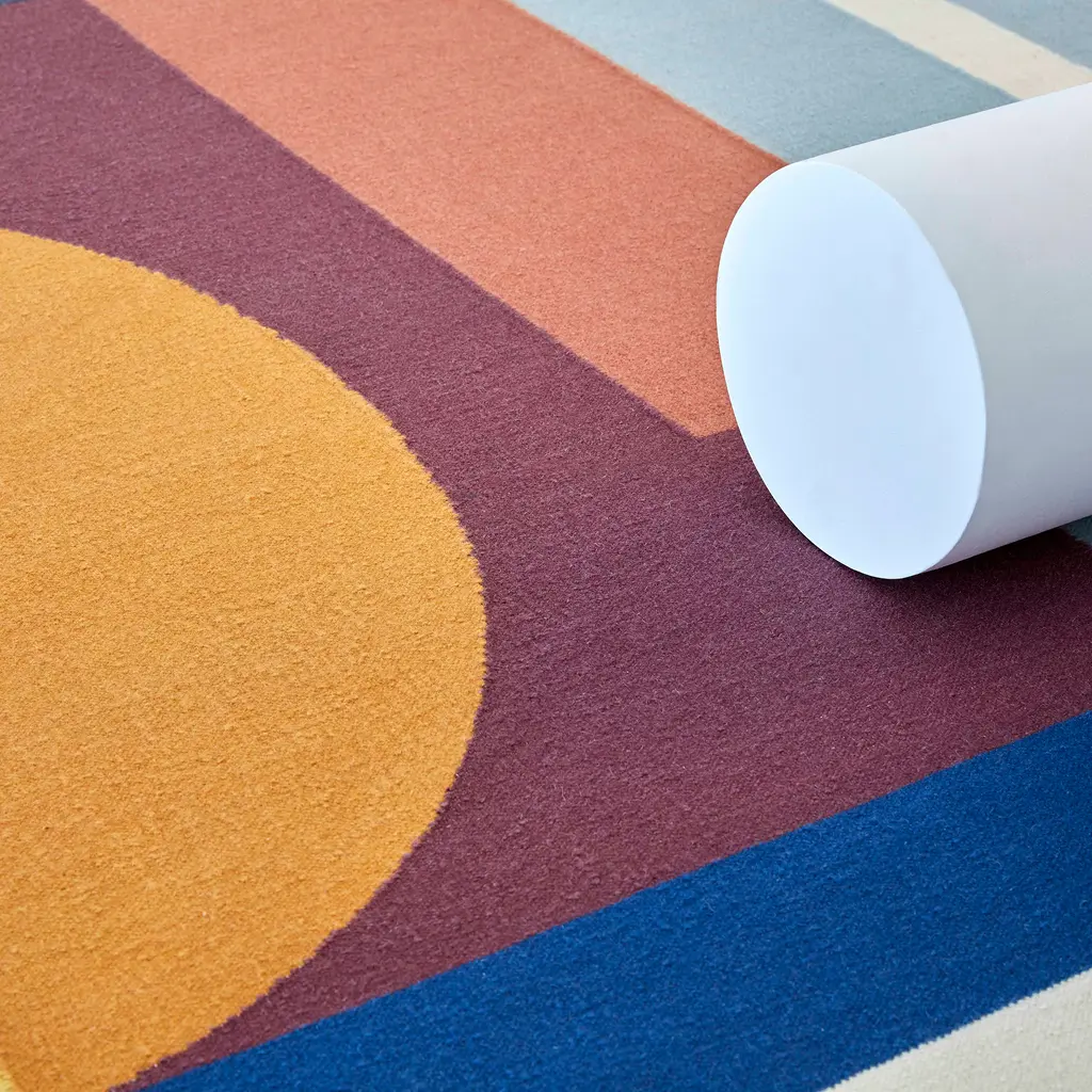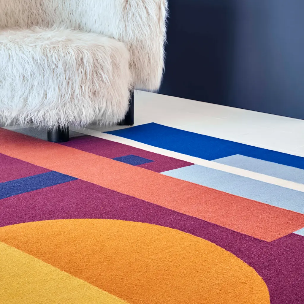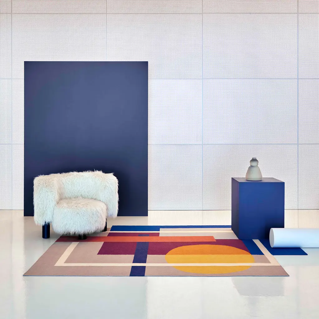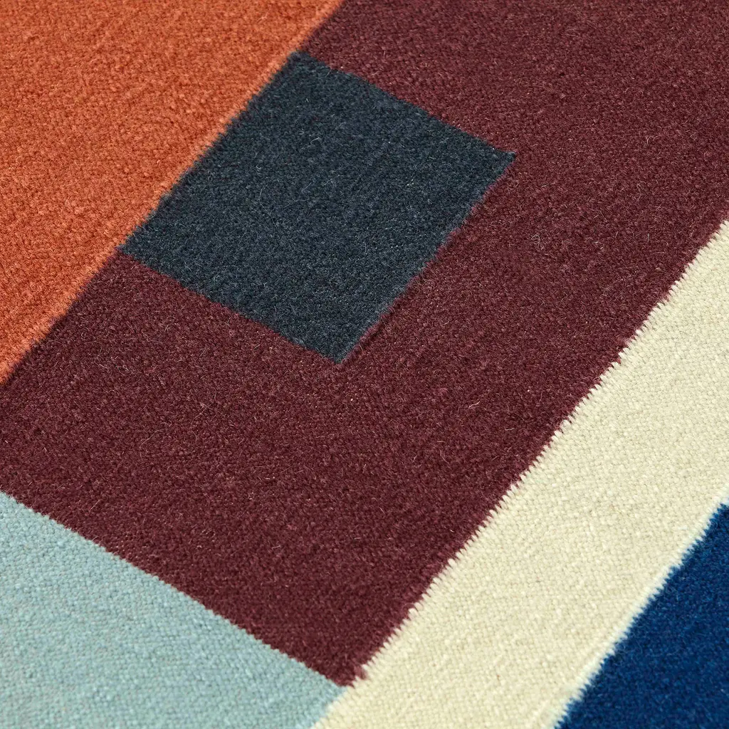 The Zoe Sool Rug by GAN Rugs plays with geometry and color in a way that feels both structured and effortless. Designed by Daria Zinovatnaya, this kilim rug is flat-woven using a traditional technique that skips knots altogether, resulting in a lightweight, durable piece that’s also reversible. The tight weave gives it a smooth, low-pile surface that works well in busy areas. The design layers crisp shapes and bold contrasts, making it an easy way to bring personality into a space. Available in two sizes, it’s a straightforward, no-fuss option that still makes an impact.