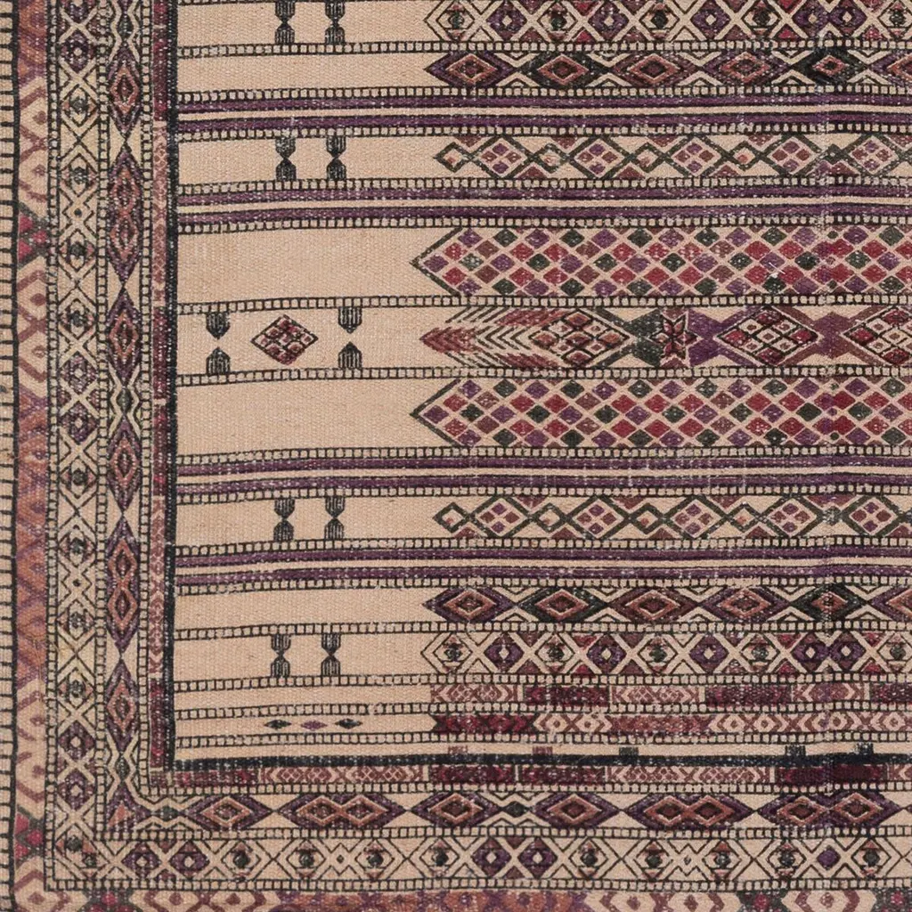 Handwoven of jute and backed in cotton, this flat-weave feels lively yet sophisticated with its detailed tribal motifs in a gorgeous eggplant hue. Jute rugs are softer underfoot than other natural-fiber options like sisal and sea grass, though just as strong and durable. You should expect some shedding with all jute rugs.
