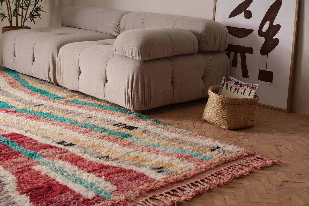 One-of-a-kind new rug, hand-knotted near the small city of Boujad in the Chaouia-Ouardigha region of Morocco