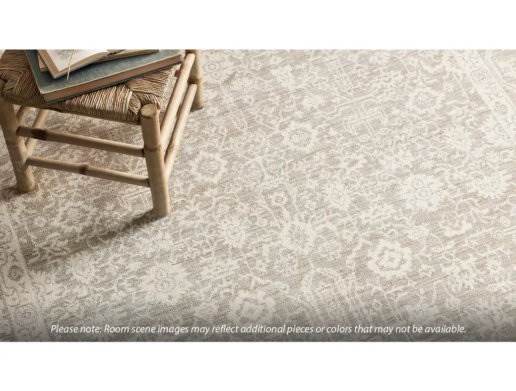 The Loloi Zuma Sand/Stone Area Rug features an intricate botanical pattern in softly-faded sand and stone hues for vintage character. This traditional-style rug is machine woven in Turkey of durable synthetic yarns for years of stylish wear.