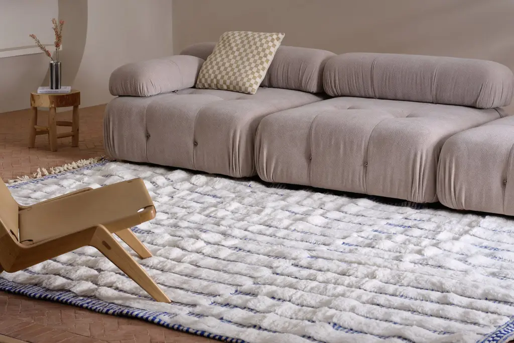 One-of-a-kind new rug, hand-knotted near the small city of Boujad in the Chaouia-Ouardigha region of Morocco