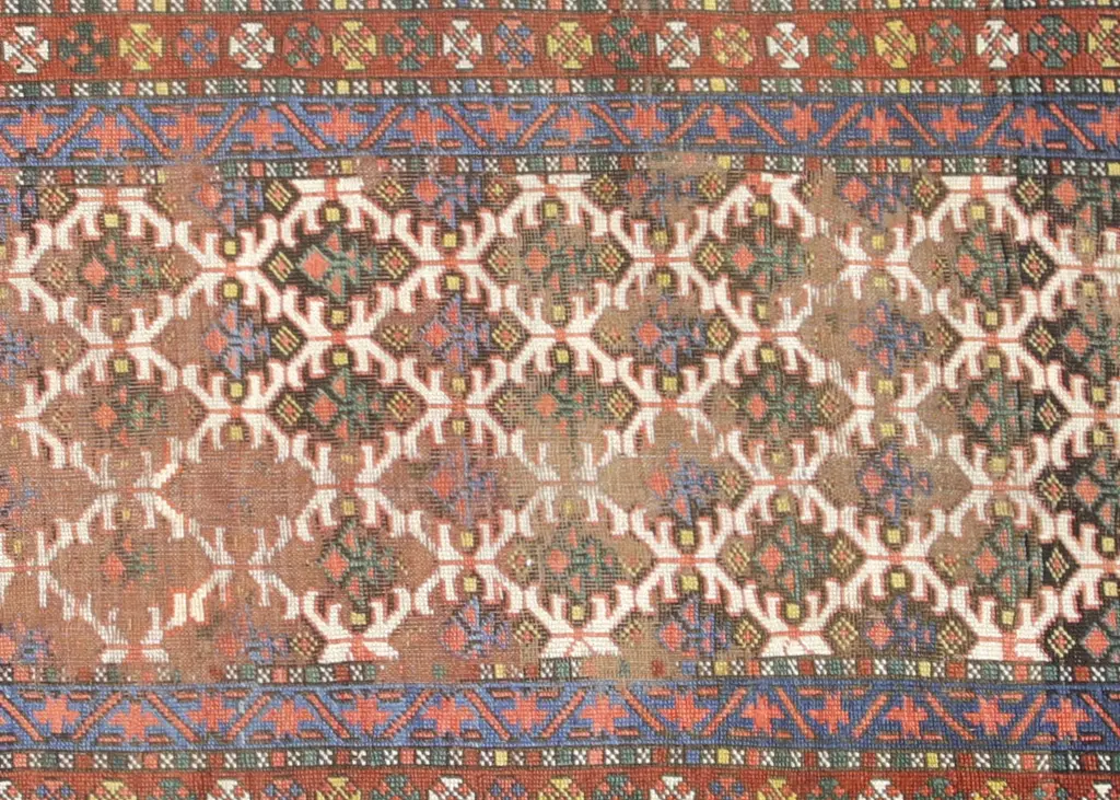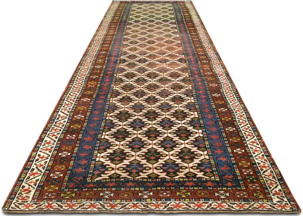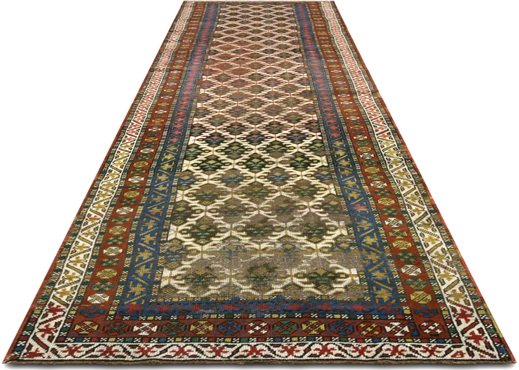 1920s Persian Heriz Runner. Hand woven in the Mahal region of Iran. Distressed and refinished in the U.S. The Persian carpet is a part of the Persian (Iranian) art and culture. Carpet-weaving in Persia dates back to the Bronze Age. The earliest surviving Persian carpets come from the Safavid dynasty in the 16th century.