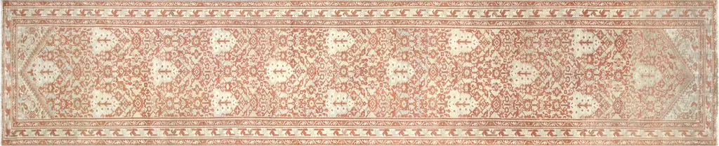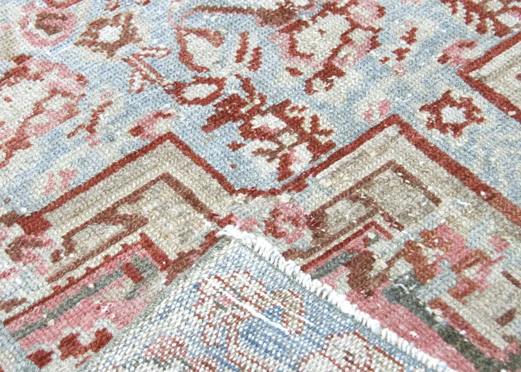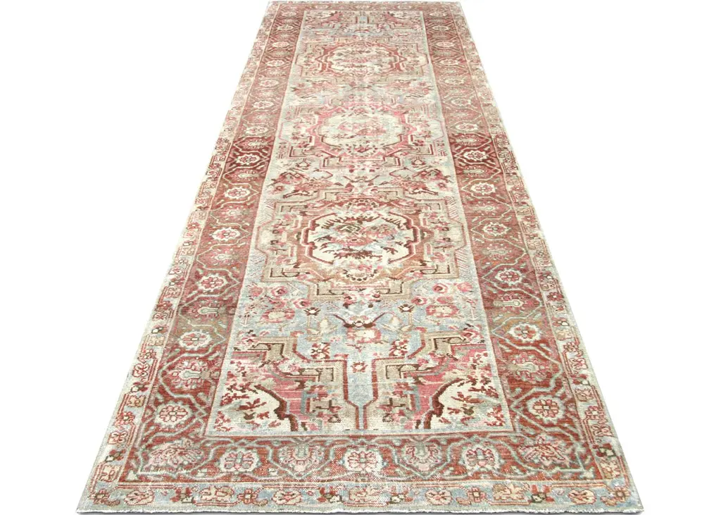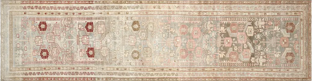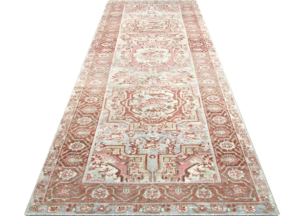 1920s Persian Malayer Runner. Hand woven in the Hamadan region of Iran. These intricately handwoven carpets using centuries-old techniques from all over the old world, are distressed and organically neutralized from its original colors to produce revolutionary works of art in our own facility in Los Angeles. Refinishing, a concept that recycles discarded out of fashion oriental carpets that no longer fit in our lifestyles. It is no longer your parents carpet.