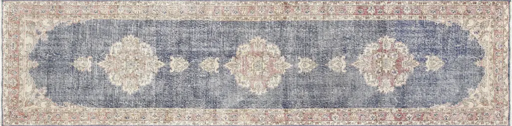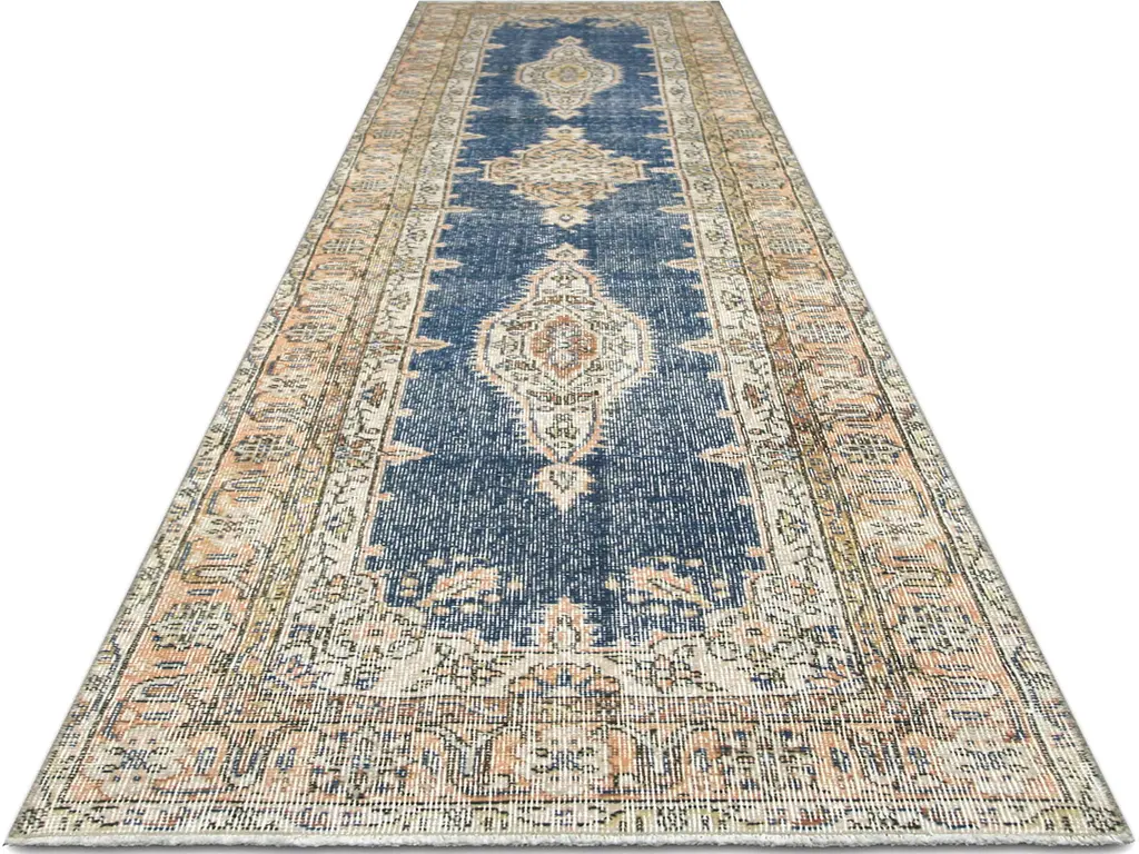 This Vintage Turkish Oushak Runner is the perfect way to add texture and antique flair to any living space. Crafted with wool on a cotton base, its vibrant colors highlight intricate floral and geometric designs, creating a unique and timeless look. Measuring 2'7" x 11'8", it's sure to make a lasting impression.