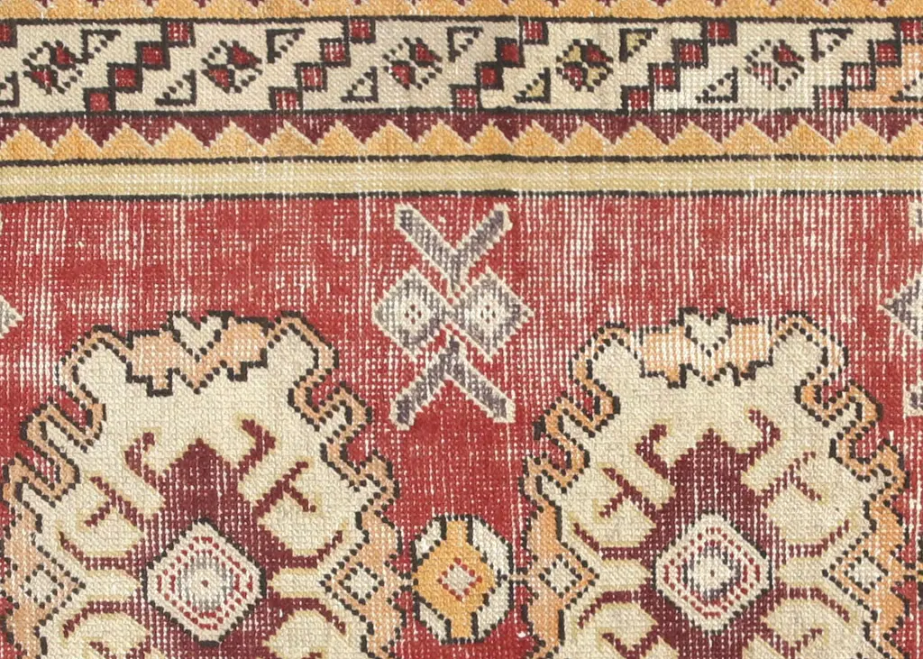 This Vintage Turkish Oushak Runner is the perfect way to add texture and antique flair to any living space. Crafted with wool on a cotton base, its vibrant colors highlight intricate floral and geometric designs, creating a unique and timeless look. Measuring 3'2" x 9'4", it's sure to make a lasting impression.