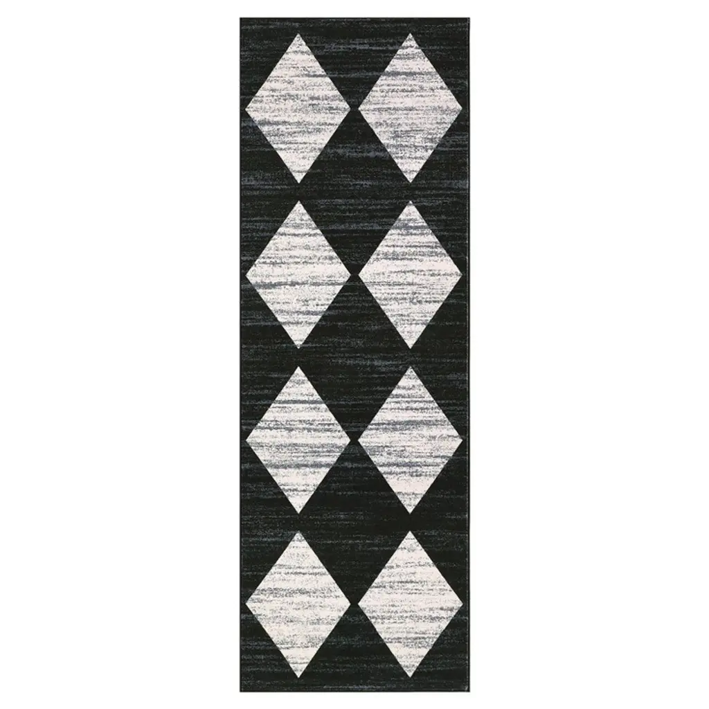 2 X 6 Ft Polyester Brown Rectangular Laundry Bathroom Kitchen Modern Geometric Diamond Print Machine Washable Runner Rug