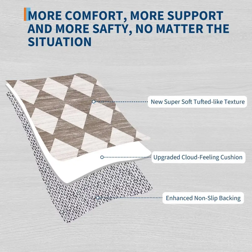 With non slip backing, safe for families and pets, ensuring a friendly environment for all.This carpet showcases a striking geometric design, where precision-cut forms and rhythmic patterns create visual movement and contemporary flair.This washable rug features a stain resistant, high durability construction - making it perfect for high traffic areas.The low pile provides a flat and even surface that is both easy to maintain and perfect for high-traffic areas, while still maintaining a soft and comfortable feel underfoot.Effortlessly preserved through simple care methods like hosing or machine washing, spot cleaning with a gentle detergent, and routine vacuuming to ensure it stays pristine and vibrant.