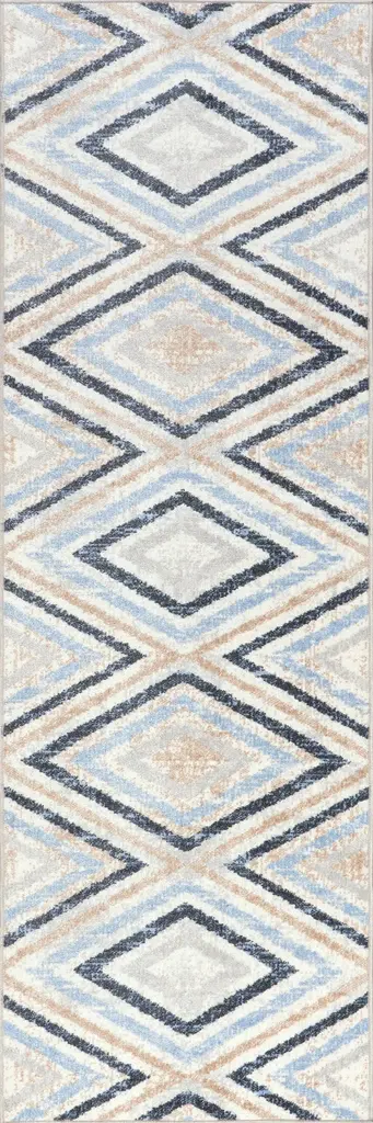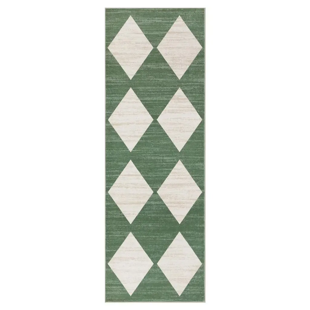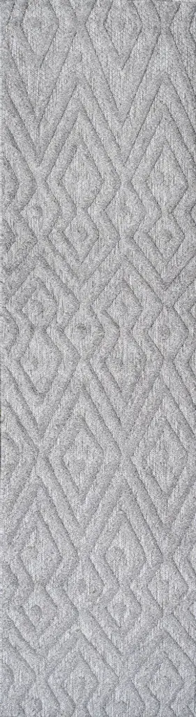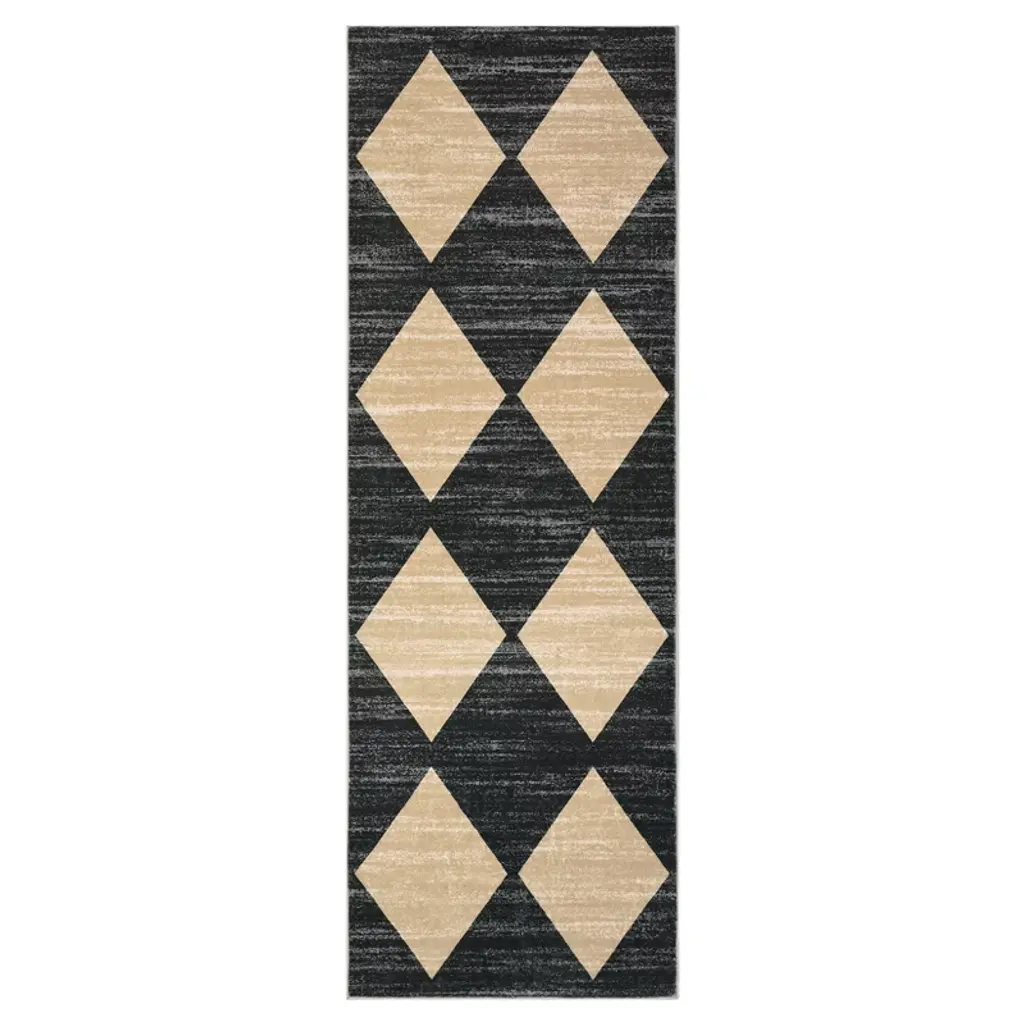 2 X 6 Ft Polyester Grey Rectangular Laundry Bathroom Kitchen Modern Geometric Diamond Print Machine Washable Runner Rug