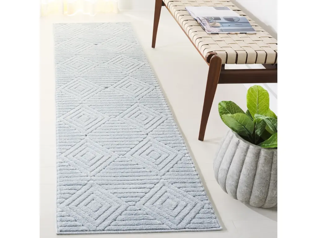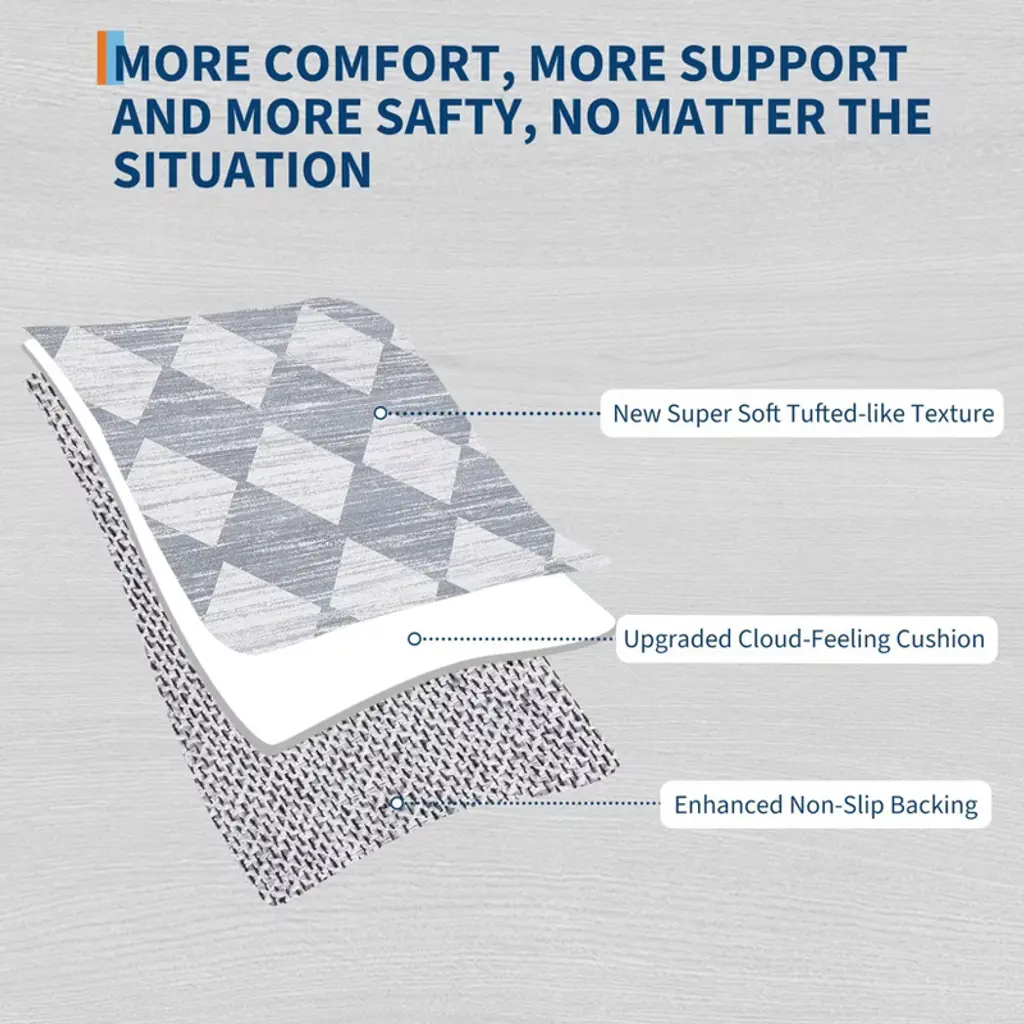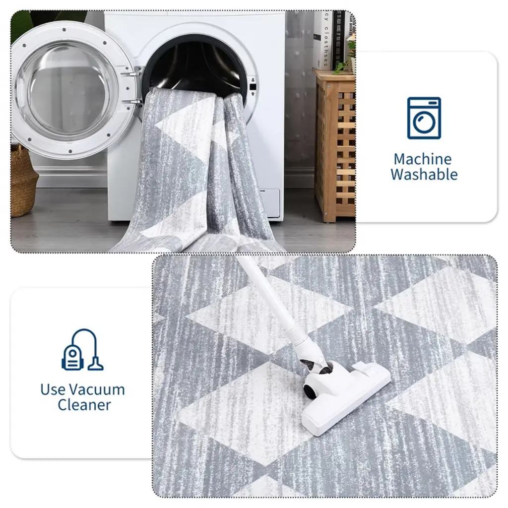 With non slip backing, safe for families and pets, ensuring a friendly environment for all.This carpet showcases a striking geometric design, where precision-cut forms and rhythmic patterns create visual movement and contemporary flair.This washable rug features a stain resistant, high durability construction - making it perfect for high traffic areas.The low pile provides a flat and even surface that is both easy to maintain and perfect for high-traffic areas, while still maintaining a soft and comfortable feel underfoot.Effortlessly preserved through simple care methods like hosing or machine washing, spot cleaning with a gentle detergent, and routine vacuuming to ensure it stays pristine and vibrant.