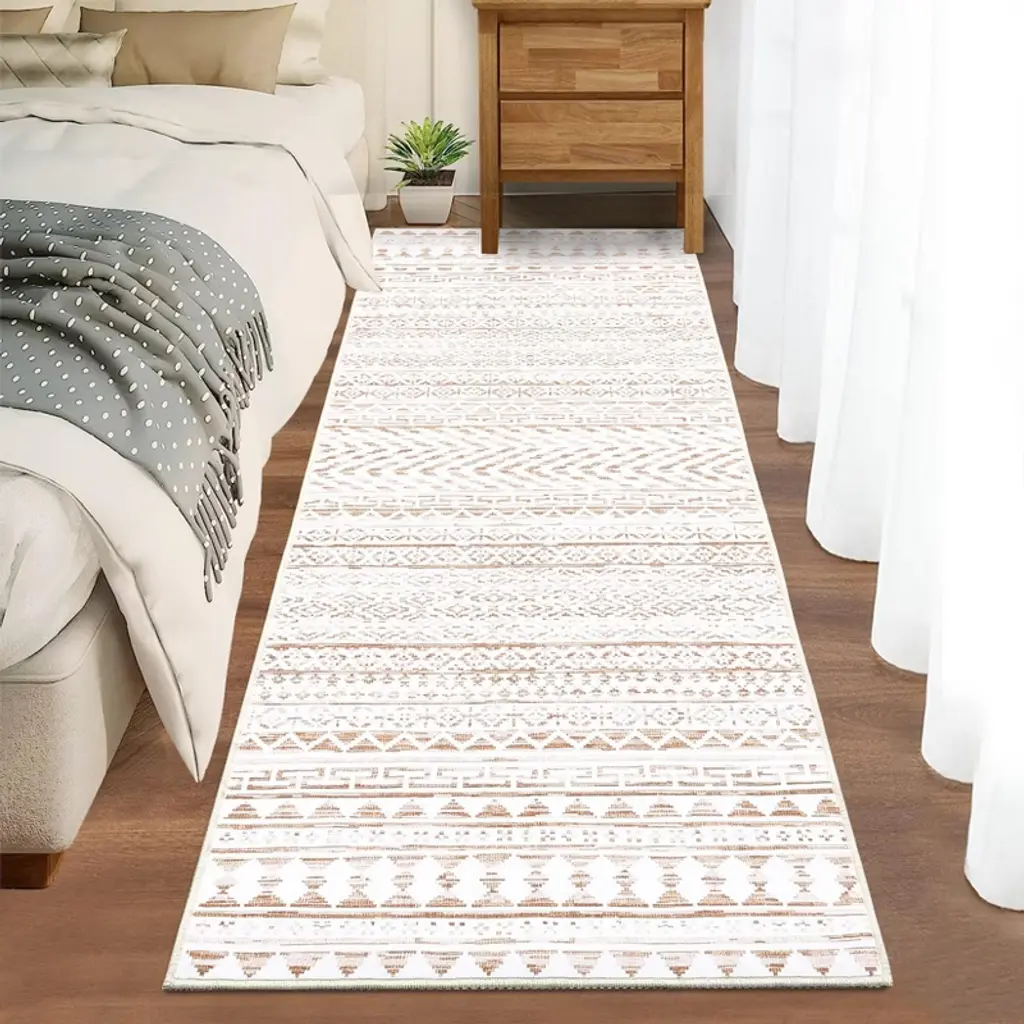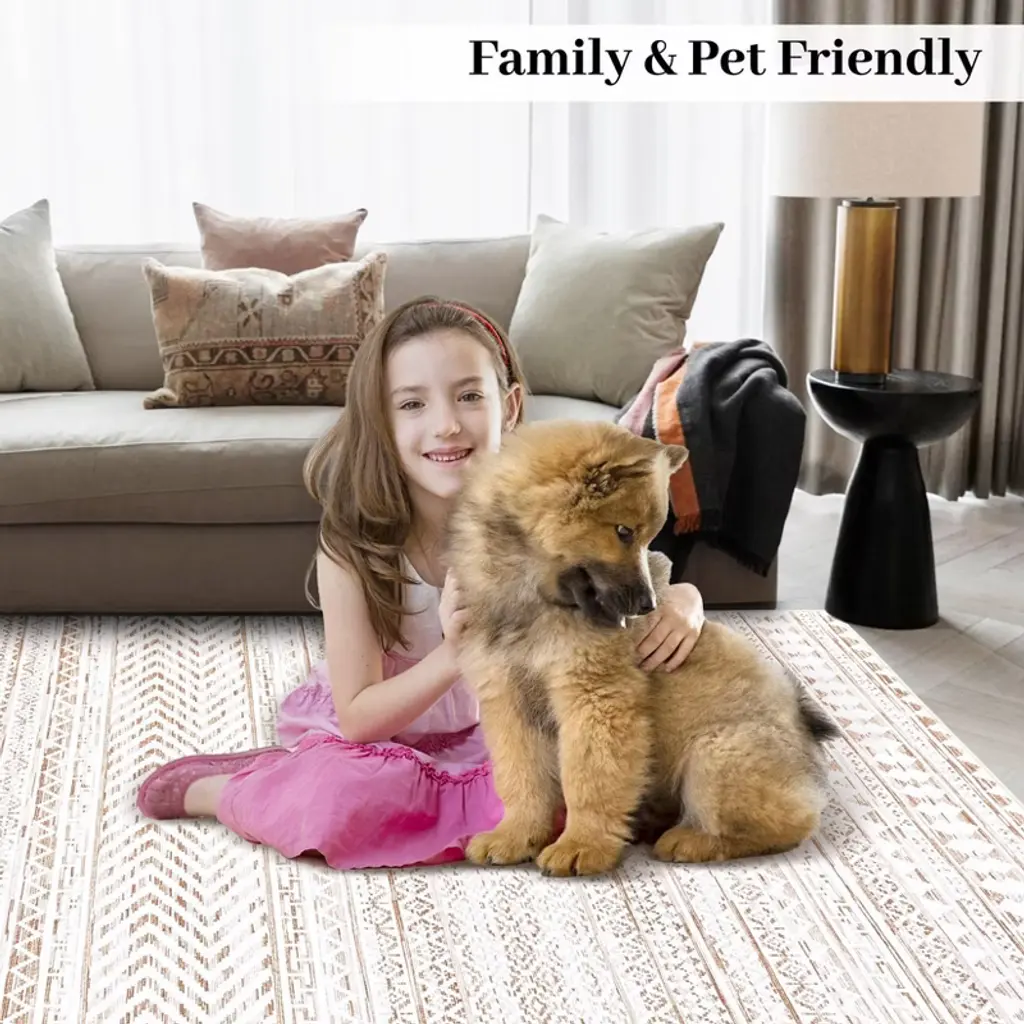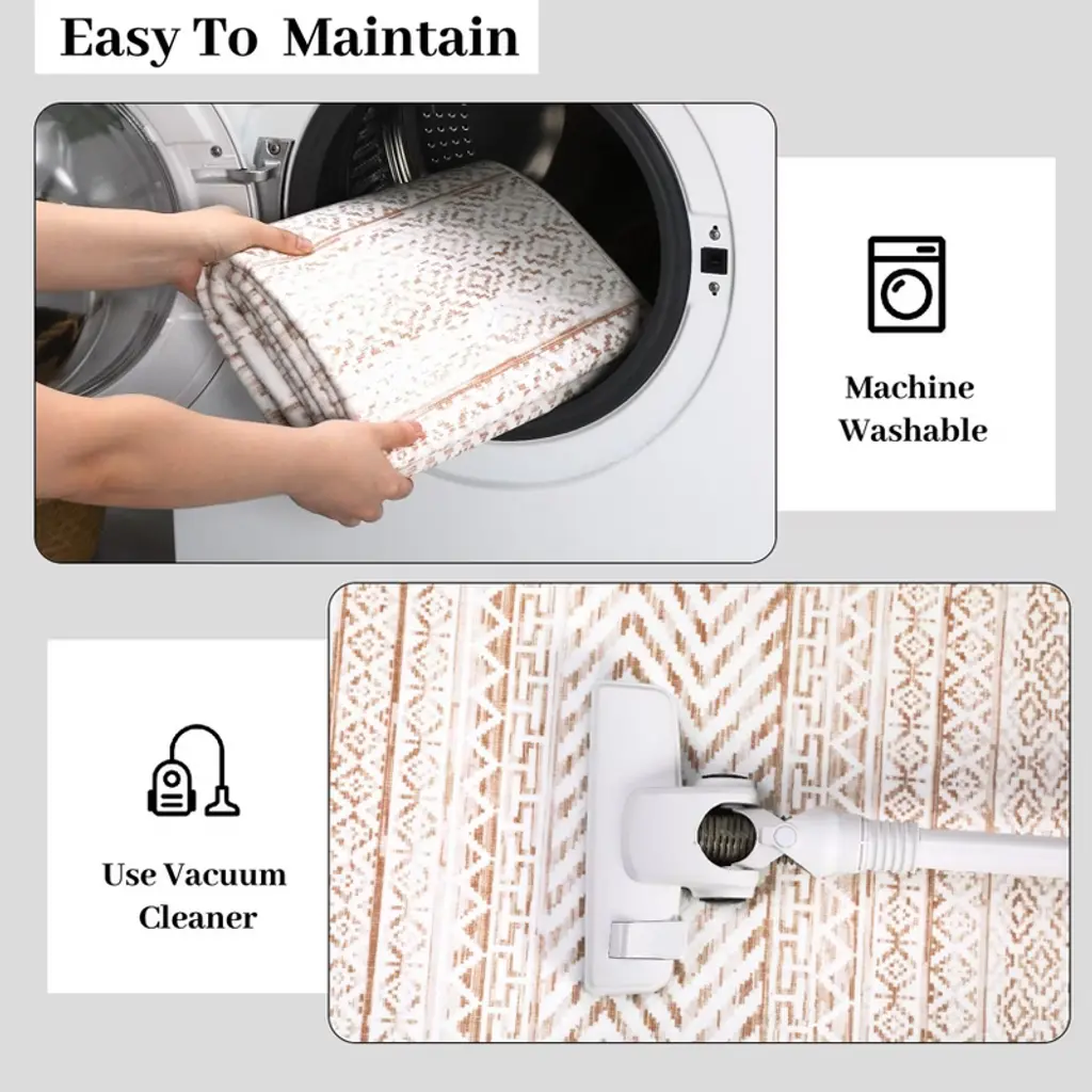With non slip backing, safe for families and pets, ensuring a friendly environment for all.The carpet features a clean linear pattern, using deliberate strokes and rhythmic lines to create a sense of movement and contemporary elegance.This washable rug features a stain resistant, high durability construction - making it perfect for high traffic areas.The low pile provides a flat and even surface that is both easy to maintain and perfect for high-traffic areas, while still maintaining a soft and comfortable feel underfoot.Effortlessly preserved through simple care methods like hosing or machine washing, spot cleaning with a gentle detergent, and routine vacuuming to ensure it stays pristine and vibrant.
