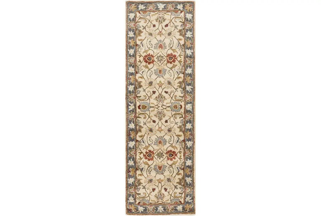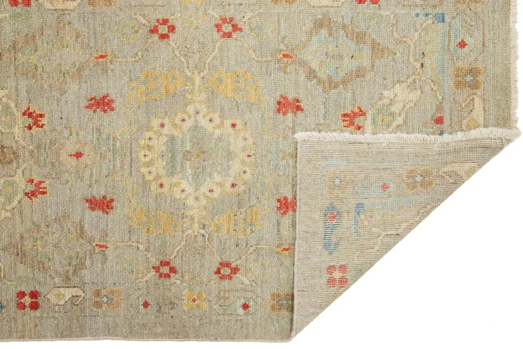 21st Century Modern Sultanabad Floral Wool Runner In Light Gray