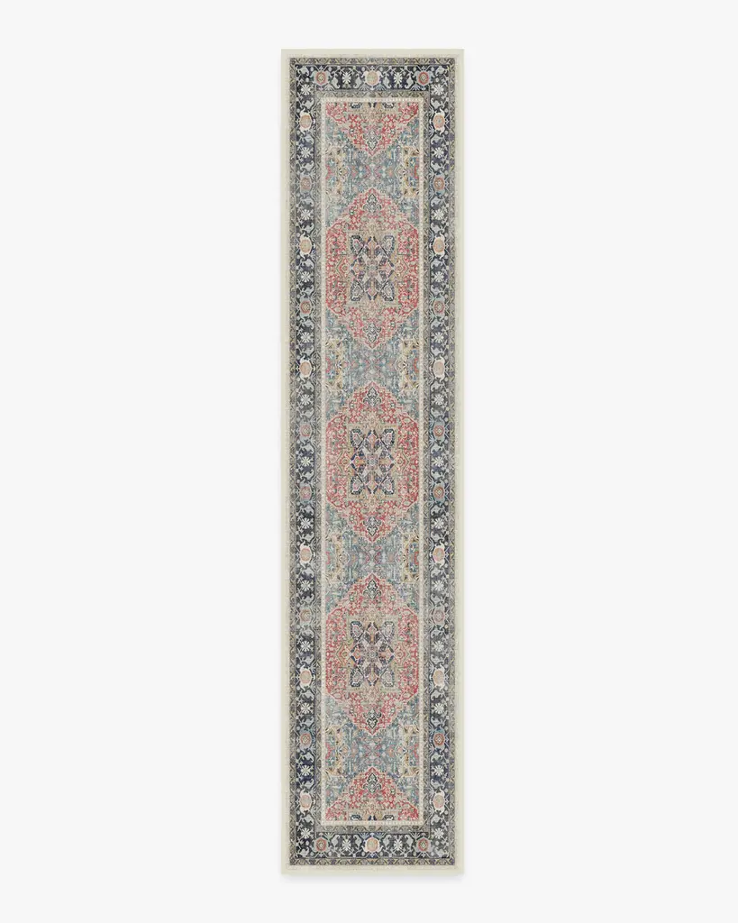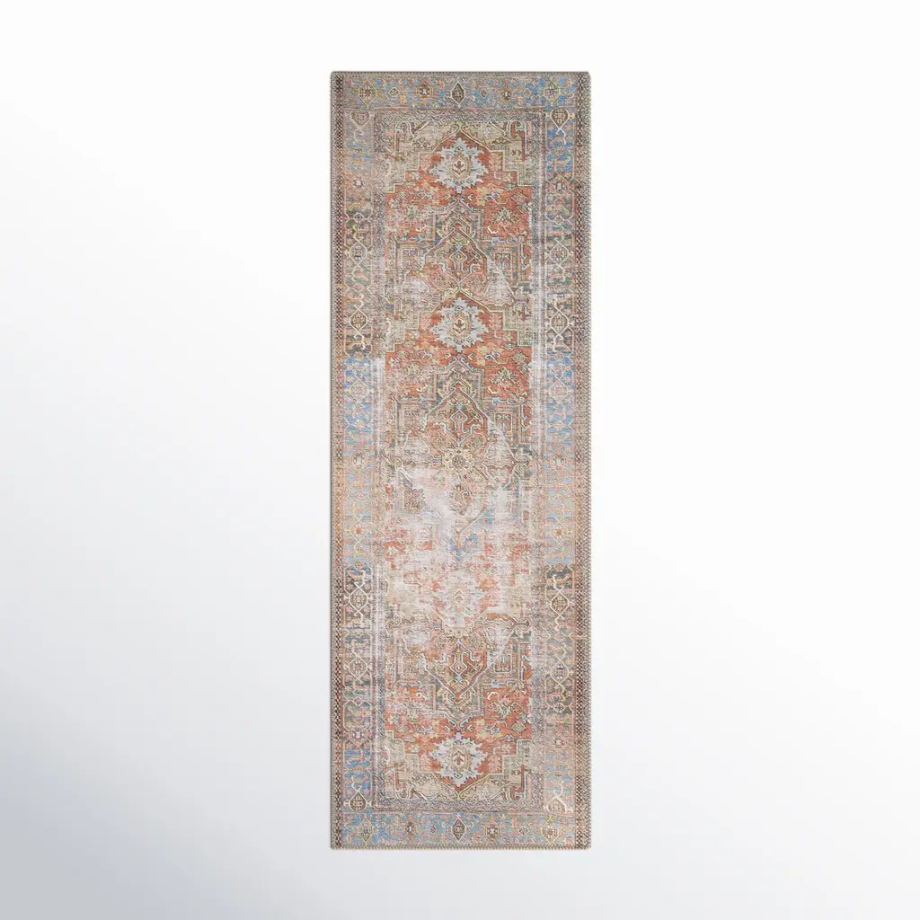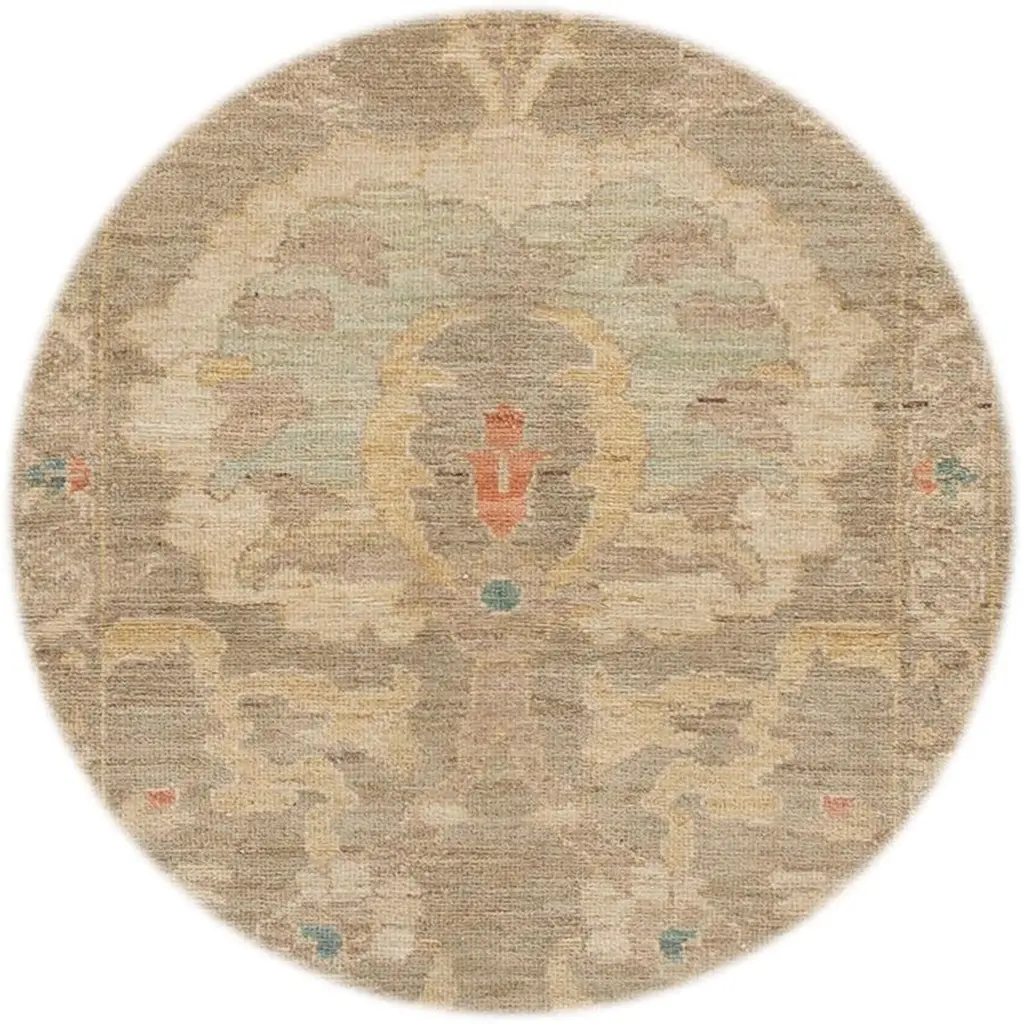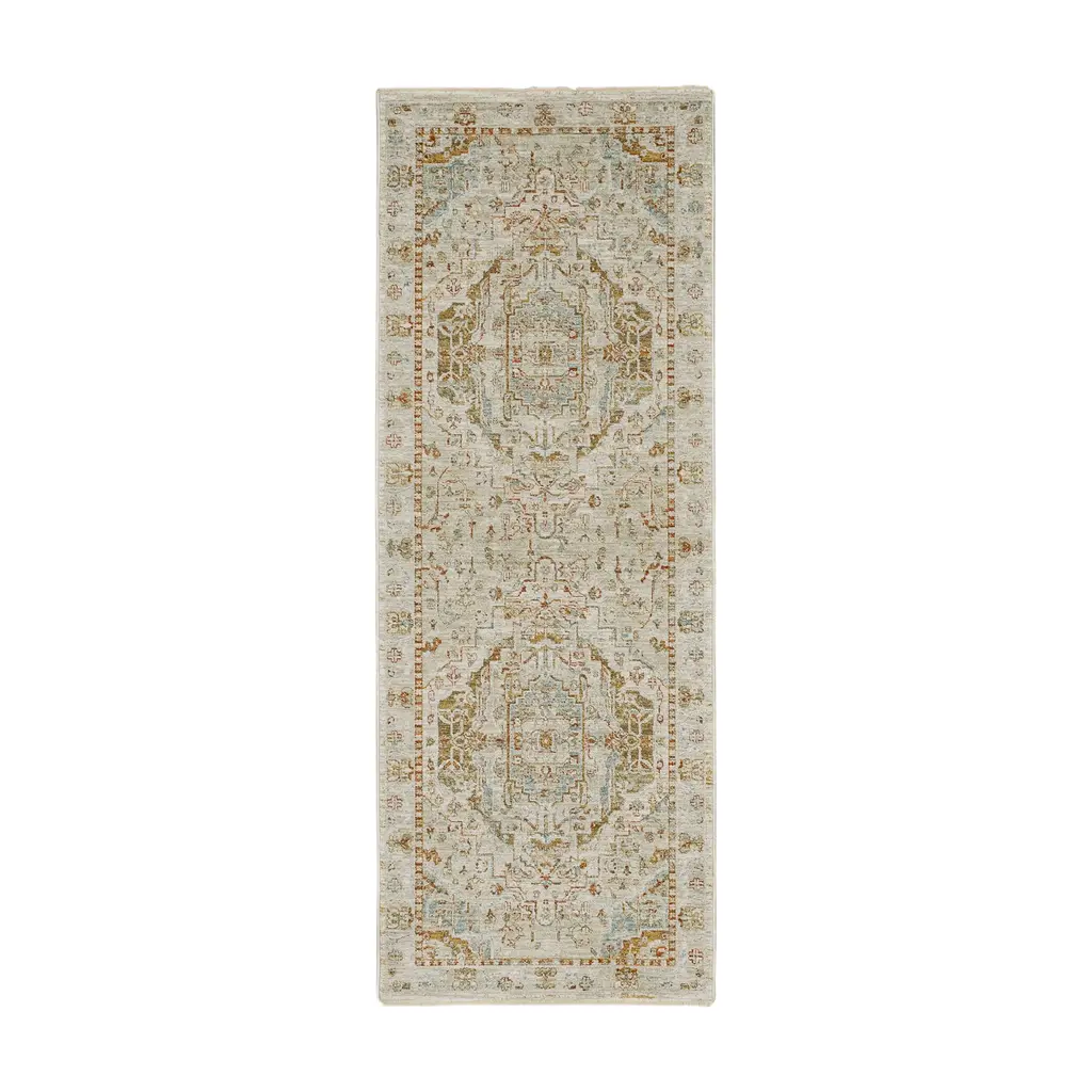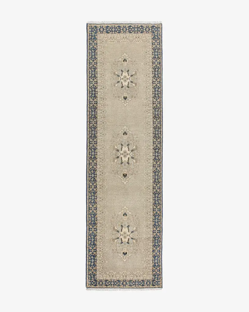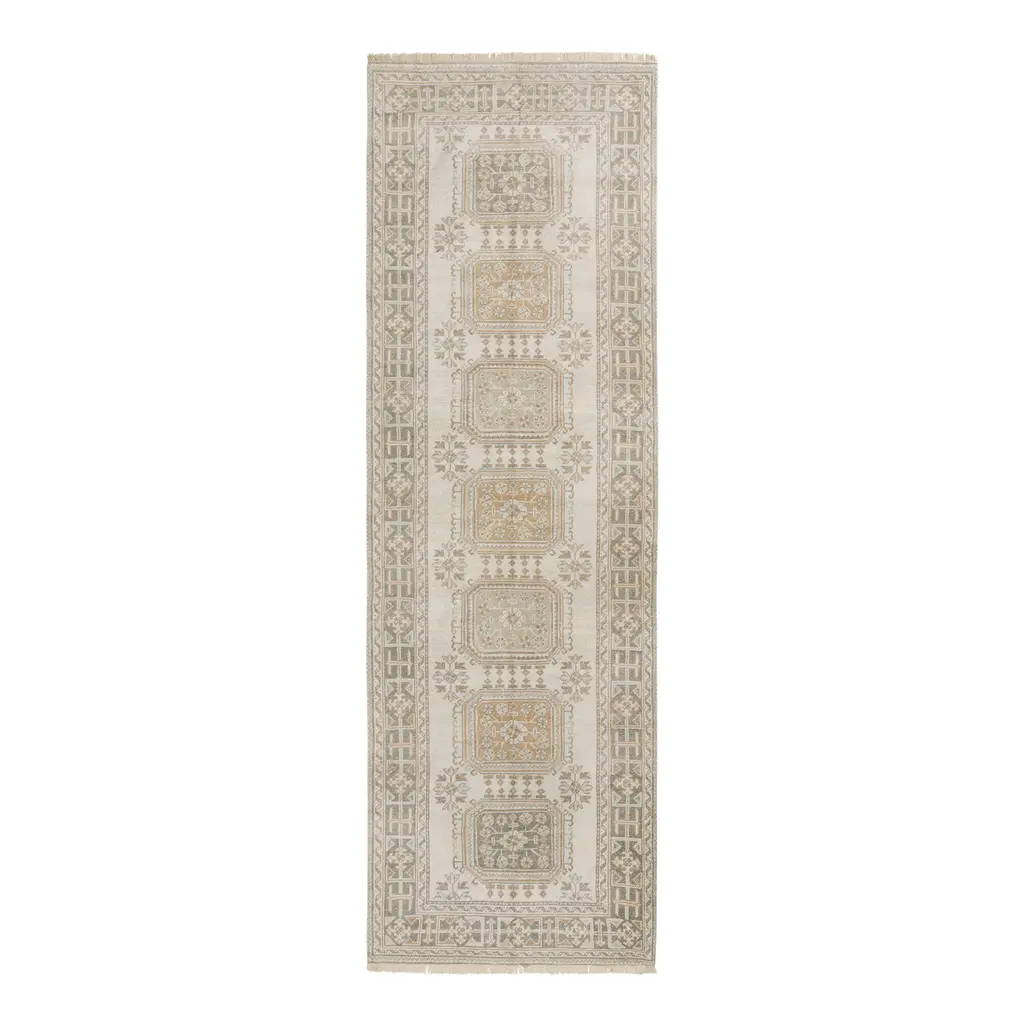 Beautiful contemporary Sultanabad runner rug, hand knotted wool with a tan field, ivory and blue accents in an all-over designThis rug measures 3' 3" x 15' 8".