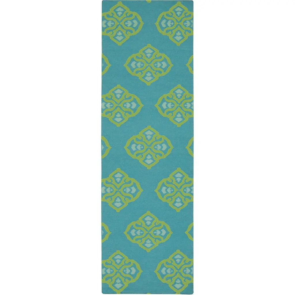 2'3"x7'5" Indoor/outdoor Fiber Rectangle Rug-Blue Geometric Aztec