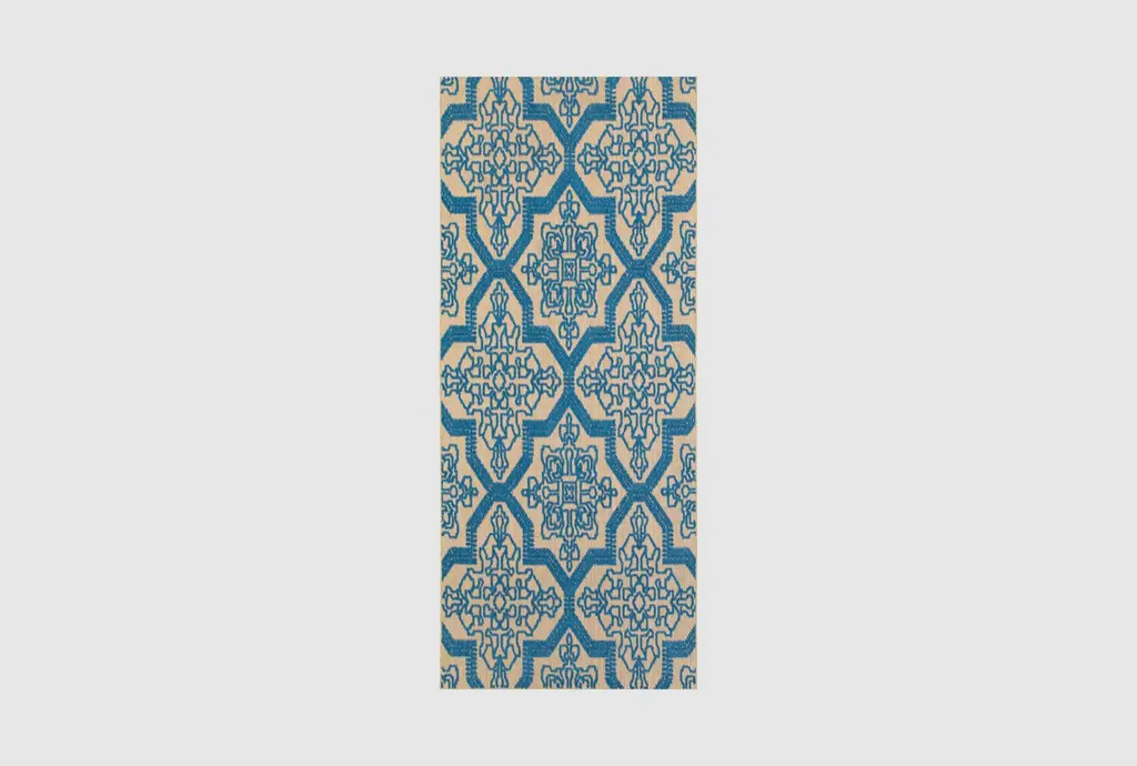 Add a touch of traditional charm to your indoor or outdoor spaces with the 2'3"X7'5" Indoor/Outdoor Fiber Rectangle Rug in Blue Geometric Aztec. The intricate blue geometric Aztec pattern against a sand background creates a visually appealing focal point, perfect for hallways, laundry rooms, and exterior areas. Crafted from durable polypropylene, this rug is designed to withstand high-traffic areas while maintaining its vibrant look.