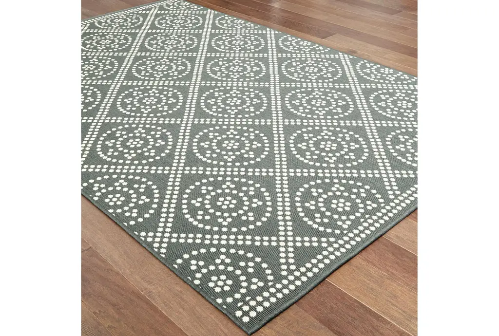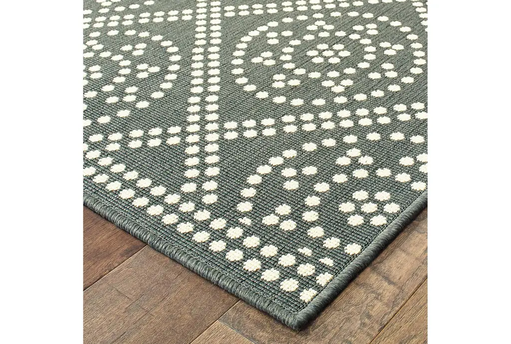 2'3"x7'5" Indoor/outdoor Fiber Rug-Grey/ivory Diamond Dots | Waterproof | Rectangle