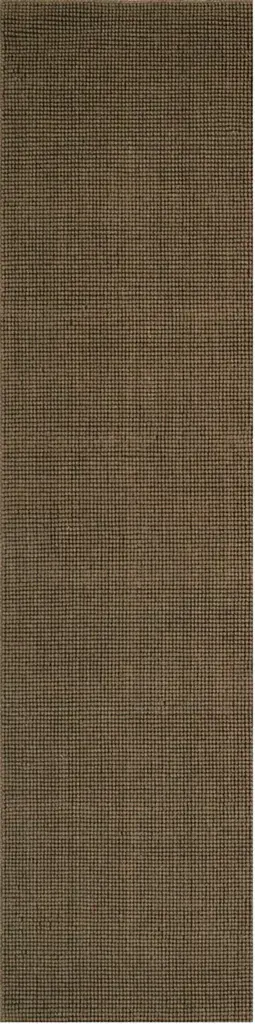 This 2'3"x8' rug in a rectangle shape adds a modern touch to any interior space. Made from wool with a sisal grid pattern in a rich fudge color, it offers both style and durability. Its low pile design makes it easy to maintain and perfect for high-traffic areas.