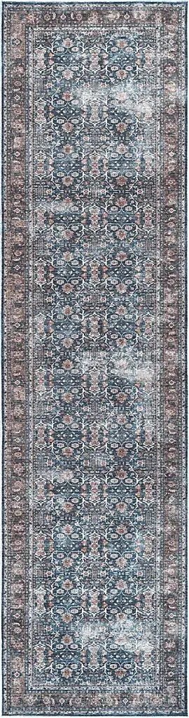 2'5"x12' Fiber Runner Rug- Tile Traditional Indigo | Geometric | Long | Rectangle