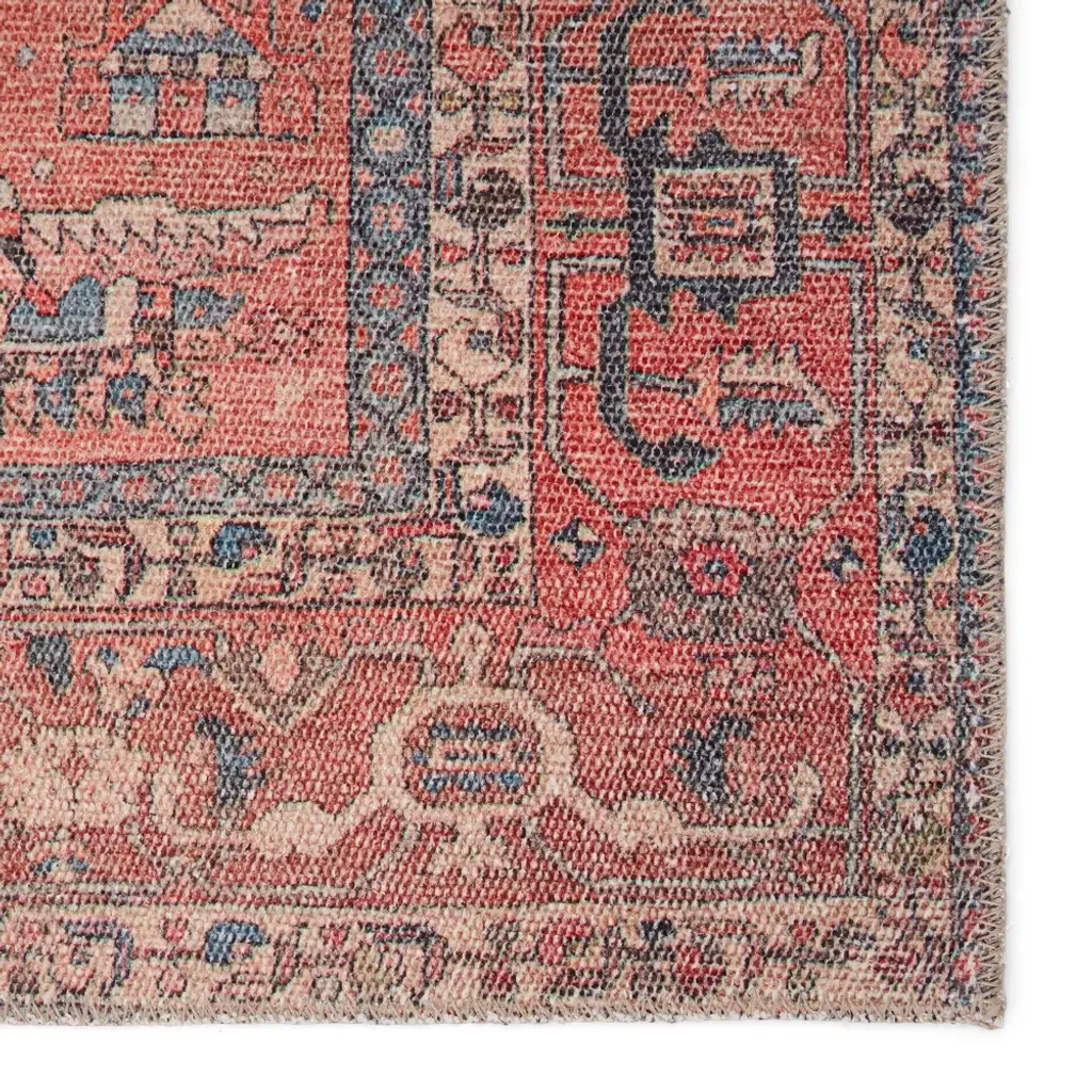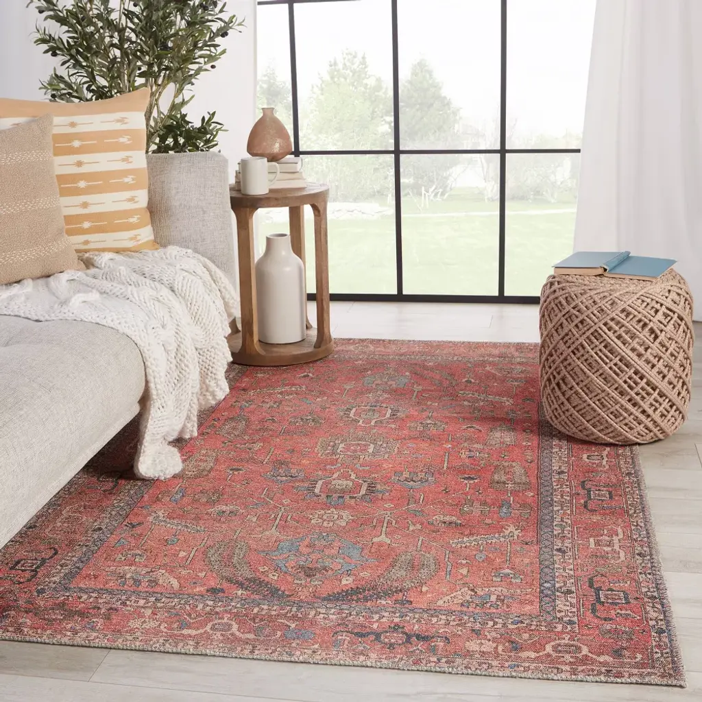 The Kindred collection melds the timelessness of vintage designs with modern, livable style. The Galina rug's vibrant brick red, terracotta, and blue tones ground spaces with luxe appeal and a classic center medallion motif. This low-pile rug is made of soft polyester and features a stunning, Old World-inspired digitally printed design.