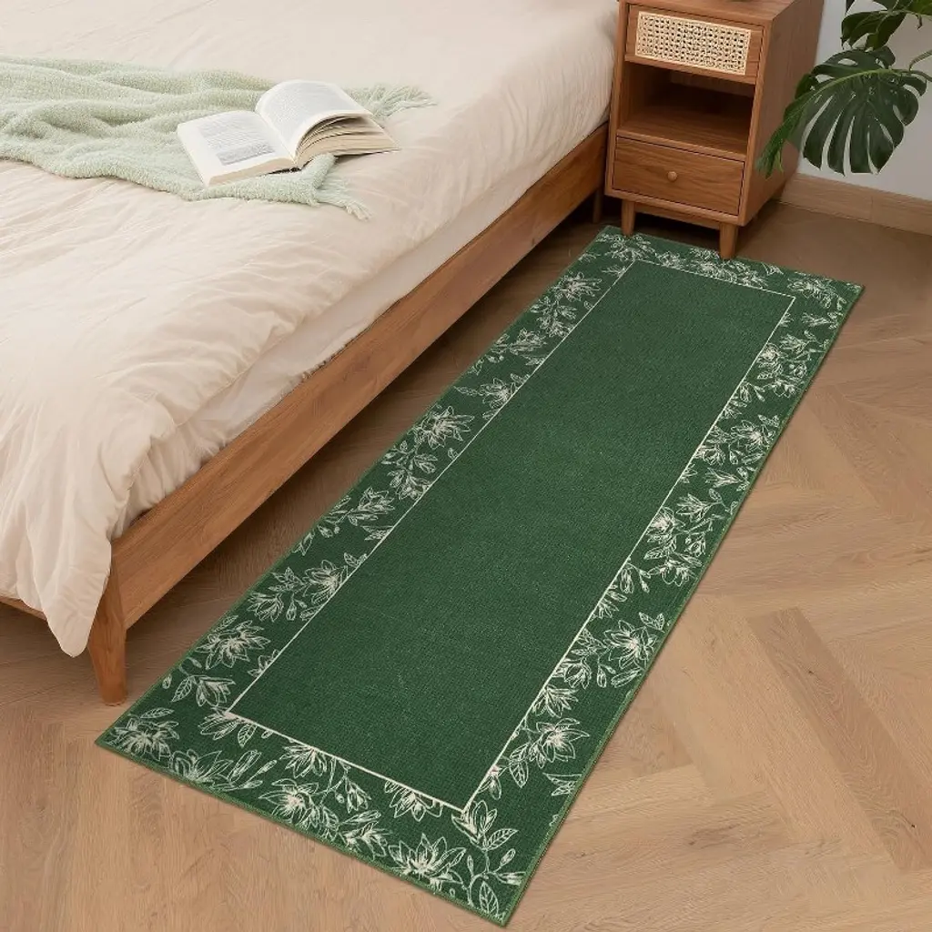 Dress up any space in your home in charming style with this Botanical Washable Runner Rug from Threshold™. This washable runner features an allover leaves pattern in an indigo hue with finished edges for a beautiful look that will coordinate easily with a variety of decor aesthetics. The olefin construction provides soft underfoot comfort, while latex backing helps to keep it in place. Plus, the low pile height makes it super easy to clean, making it highly versatile for high-traffic areas like your kitchen, living room or entryway.Threshold™: Looks like home, feels like you.