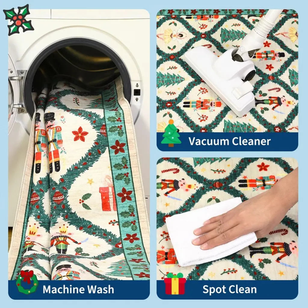 2X6 Runner Rug Washable Christmas Hallway Rug Foldable Stain Resistant Non Slip Carpet Runner, Lightweight Low Pile Nutcracker Print Rug
