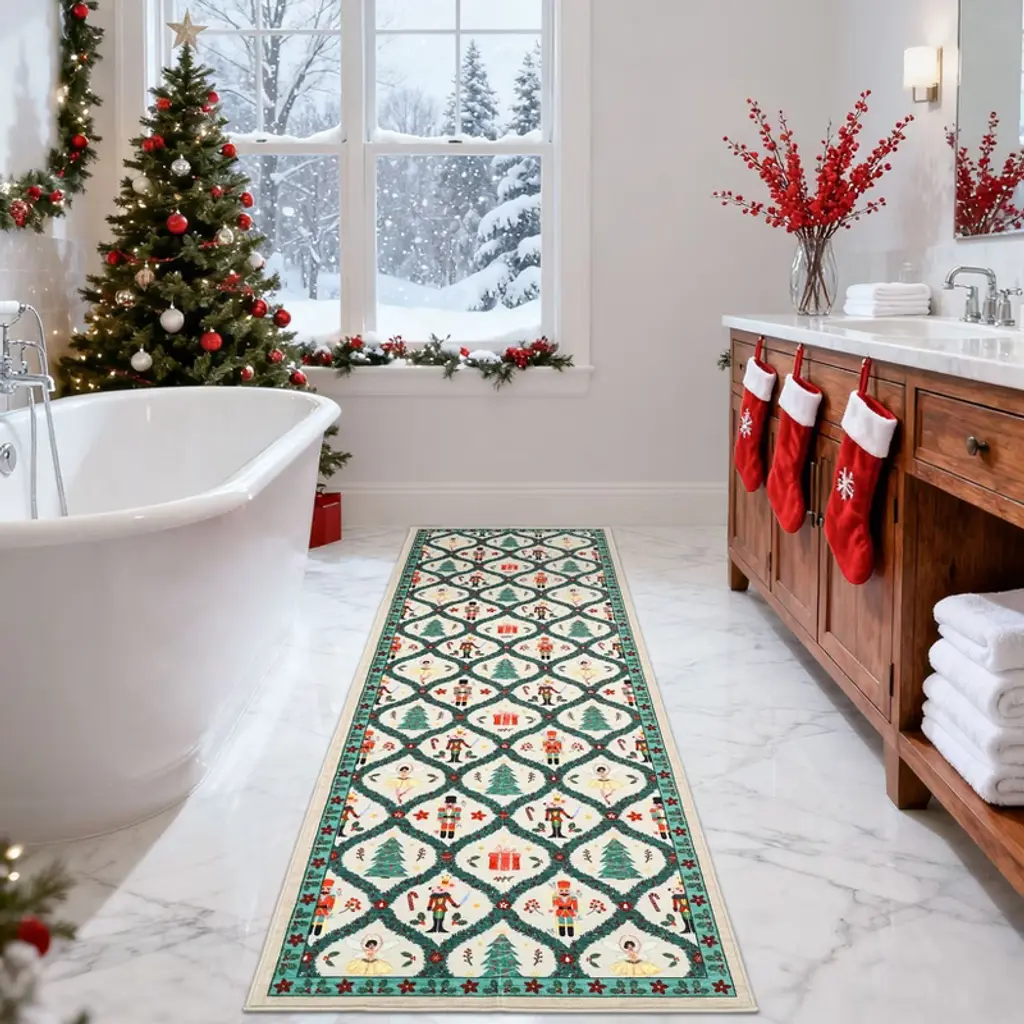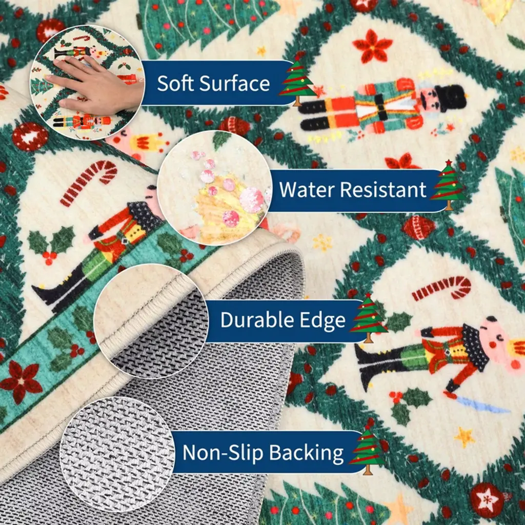Bring festive cheer to your home with a Christmas Nutcracker accent rug that turns every step into a touch of holiday softness—let your home sparkle with warmth and cheerful charm all season long! Brief Overview-Christmas-Themed Accent Rug with Nutcracker Design-Family-Friendly Low-Pile Indoor Rug-Lasting Luxury: Ultra-Plush Comfortable Rug-Easy-Clean Design for Hassle-Free Upkeep-Stay-Put Area Rug with Safe, Slip-Resistant Backing SpecificationName: Area RugStyle: Christmas Nutcracker PrintShape: RectangleFrame Material: PolyesterColor: BeigeProduct Dimensions: 2x6 / 2x8 / 4x6 / 5x7 / 8x10 / 9x12 Packing List1 x Area Rug1 x Usage Note Usage Tips1. After unrolling your rug, allow a few days for any creases or folds to flatten out naturally for the best look and fit.2. Vacuum your rug regularly and spot clean spills promptly to maintain its appearance and longevity.3. Regularly vacuum with a soft-bristle attachment in the opposite direction of the pile—this gently cares for fibers while deeply removing embedded dust and pet hair, keeping your rug plush and fresh-looking for years.