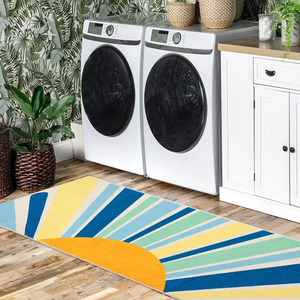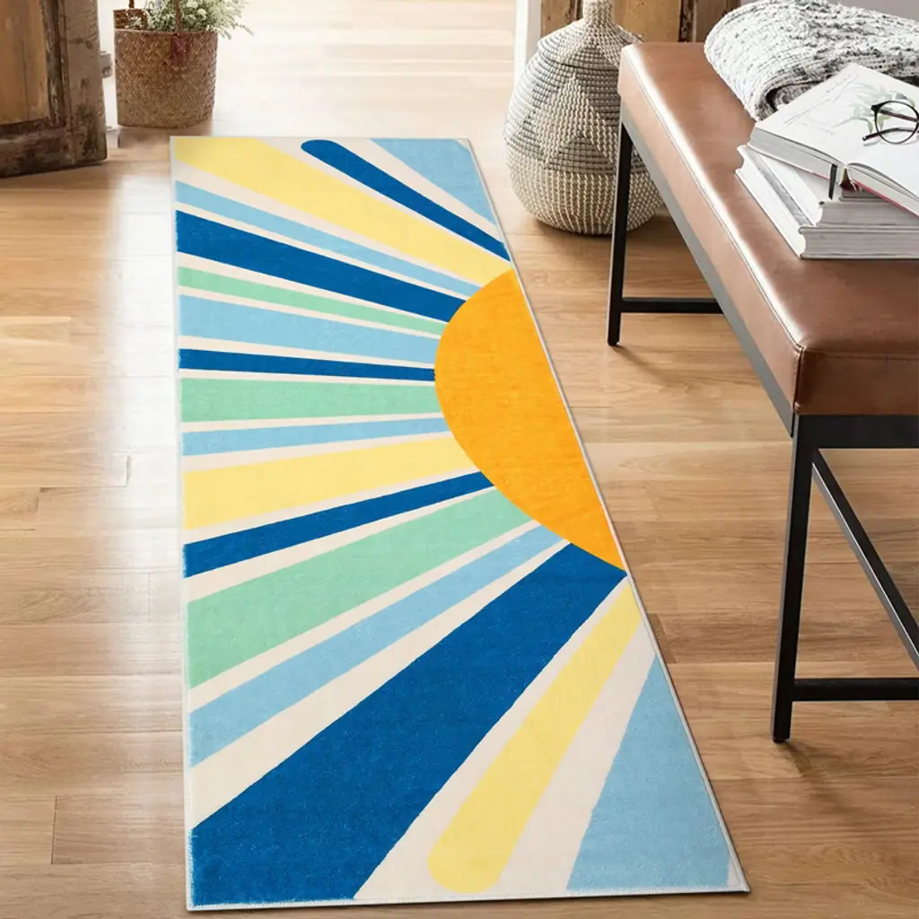 3X8 Runner Area Rug, Machine Washable Colorful Area, Non Slip Rug, Indoor Non-slip Carpet, Modern Minimalist Front Door Mat, Sun Accent Rug, Blue