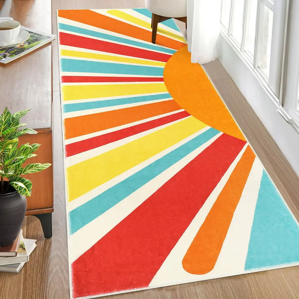 Transform your home with our vibrant Area Rug, designed to bring a splash of color and style to any room. Whether you're looking to enhance your living room, bedroom, or playroom, this modern minimalist rug is the perfect addition to your decor.Key Features:- Versatile Home Decor: Our colorful area rug is designed to complement any room, offering a modern minimalist touch that enhances your living space effortlessly.- Machine Washable: Say goodbye to the hassle of cleaning. This rug is machine washable, ensuring easy maintenance while retaining its vibrant colors and soft texture, wash after wash.- Non-Slip Safety: Safety is a priority with our non-slip backing, providing stability on various surfaces. Ideal for high-traffic areas such as entryways and kitchens, this rug stays securely in place.- Stylish Entryway Solution: Welcome your guests with style. Our rug doubles as an elegant front door mat, effectively trapping dirt and moisture from shoes to keep your home clean.- Multi-Purpose Use: Beyond the entryway, this versatile rug is perfect for kitchens, bedrooms, and playrooms, offering endless decorating possibilities and enhancing every space it graces.Upgrade your home decor with our Area Rug, where functionality meets style. Perfect for those who appreciate both aesthetics and practicality, this rug is a must-have for any modern home. Order now and experience the blend of beauty and convenience in one stunning piece.