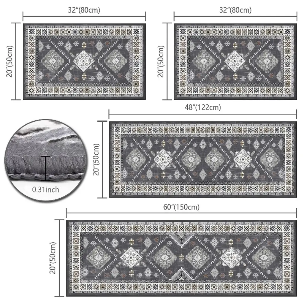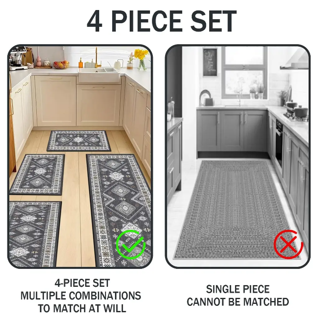 4-piece Boho Kitchen Rug Set – Non-slip, Machine-washable Mats & Runners, Farmhouse Style For Hallway, Entryway, Sink Area