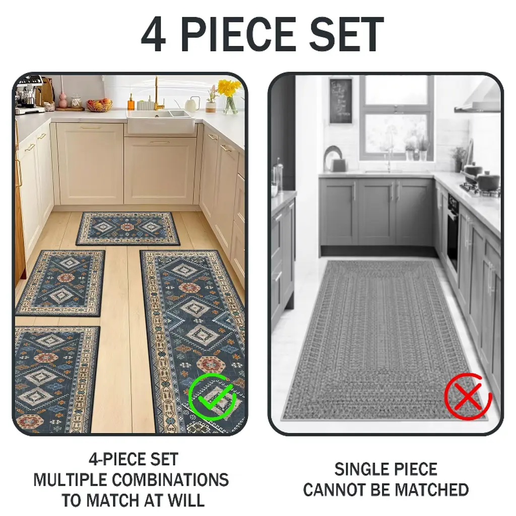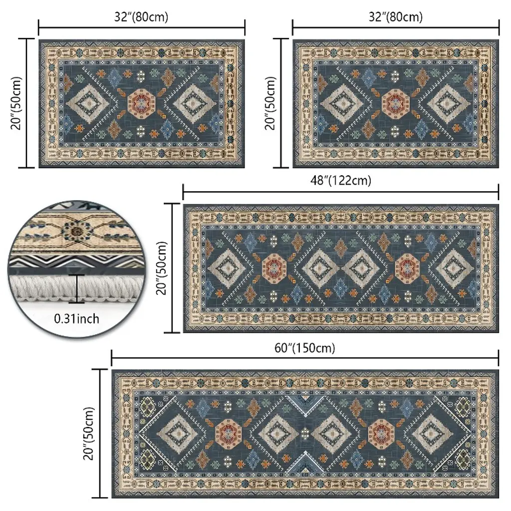 4-piece Boho Kitchen Rug Set – Non-slip, Machine-washable Mats & Runners, Farmhouse Style For Hallway, Entryway, Sink Area