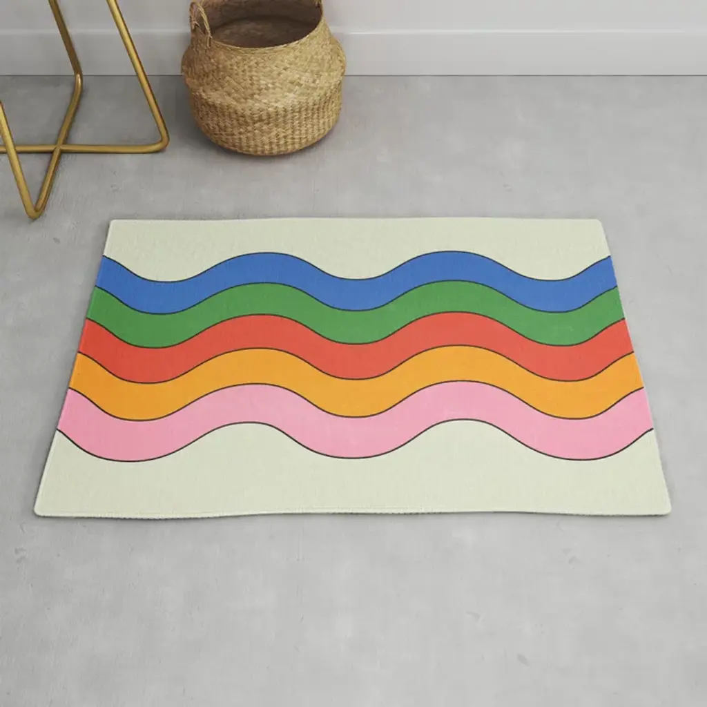 The ?Wavy Rug? is a series of rugs first exhibited in our ?Pieces Homes ?Project in Kennebunk, Maine. The Wavy Rug design concept started as a single rug composed of 10 multi-colored, undulating stripes. From there we imagined how “snippets” of the rug could be extracted and magnified to create separate designs. The 4 Stripe Runner demonstrates an example of this process. When magnified, the motion of the stripes is exaggerated causing the rug to travel within the room.