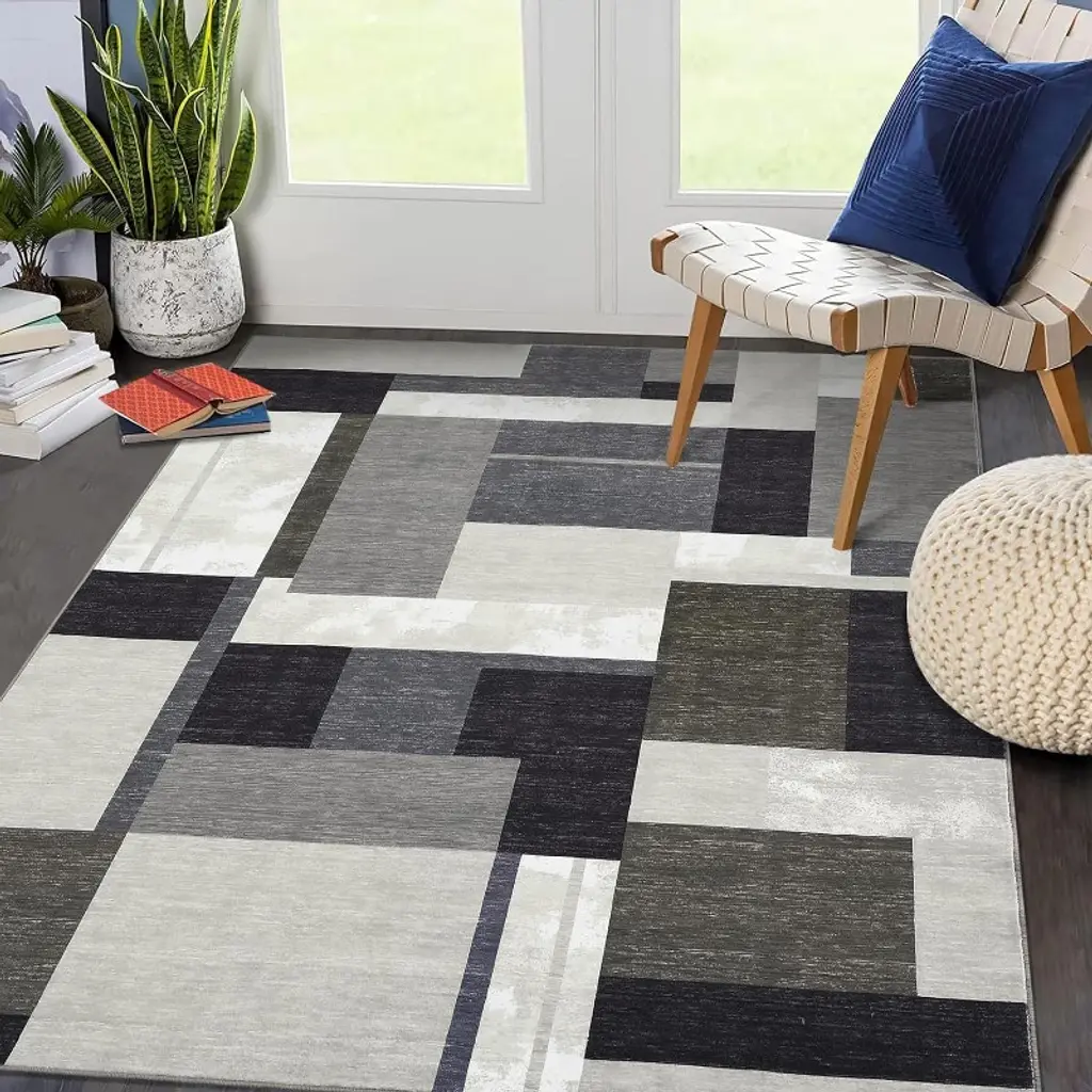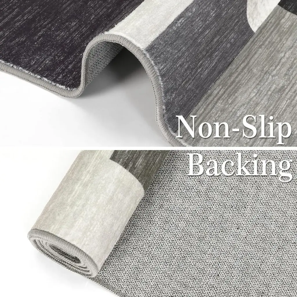 Keep your high-traffic areas safe and stylish with this 6x9 FT Machine Washable Runner Rug featuring a sleek modern geometric design in versatile ash tones. Designed for busy households, this low-pile area rug combines durability, safety, and easy maintenance, making it perfect for entryways, hallways, kitchens, laundry rooms, and more.