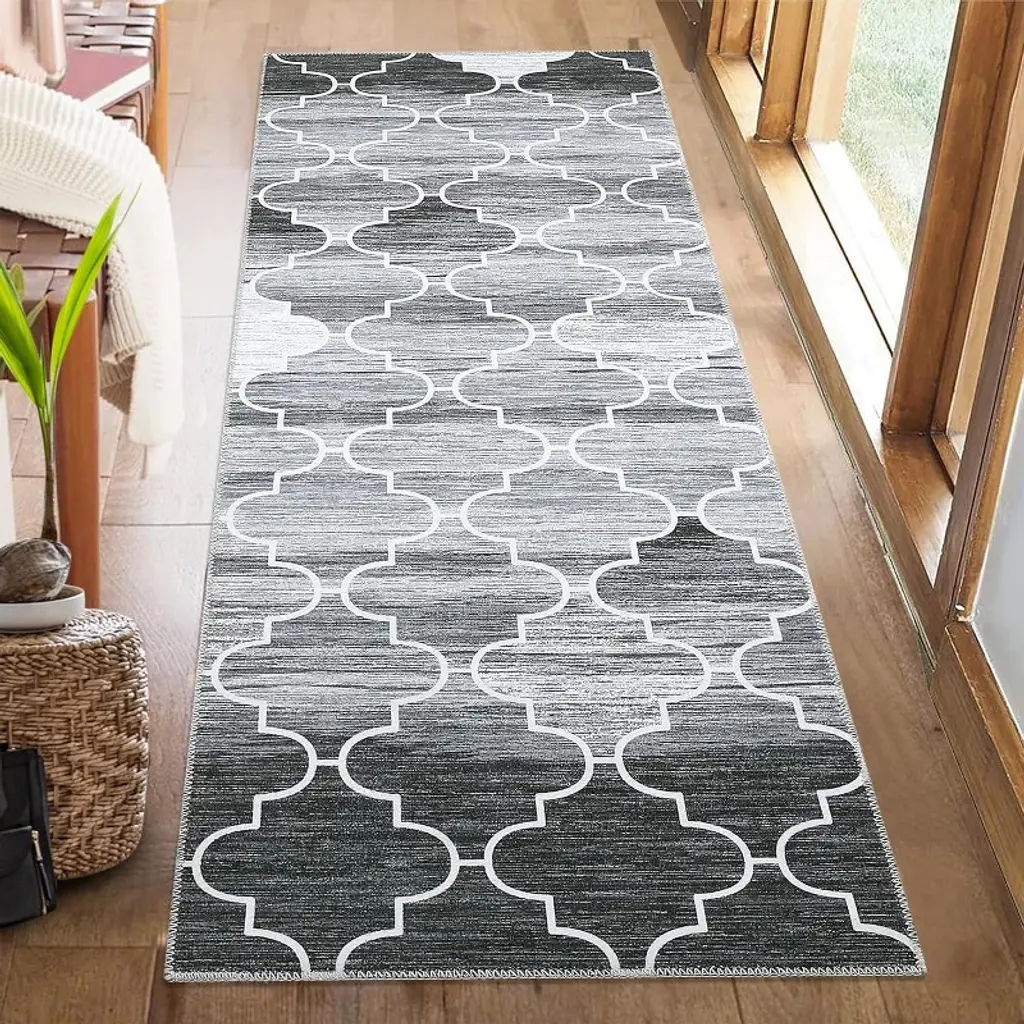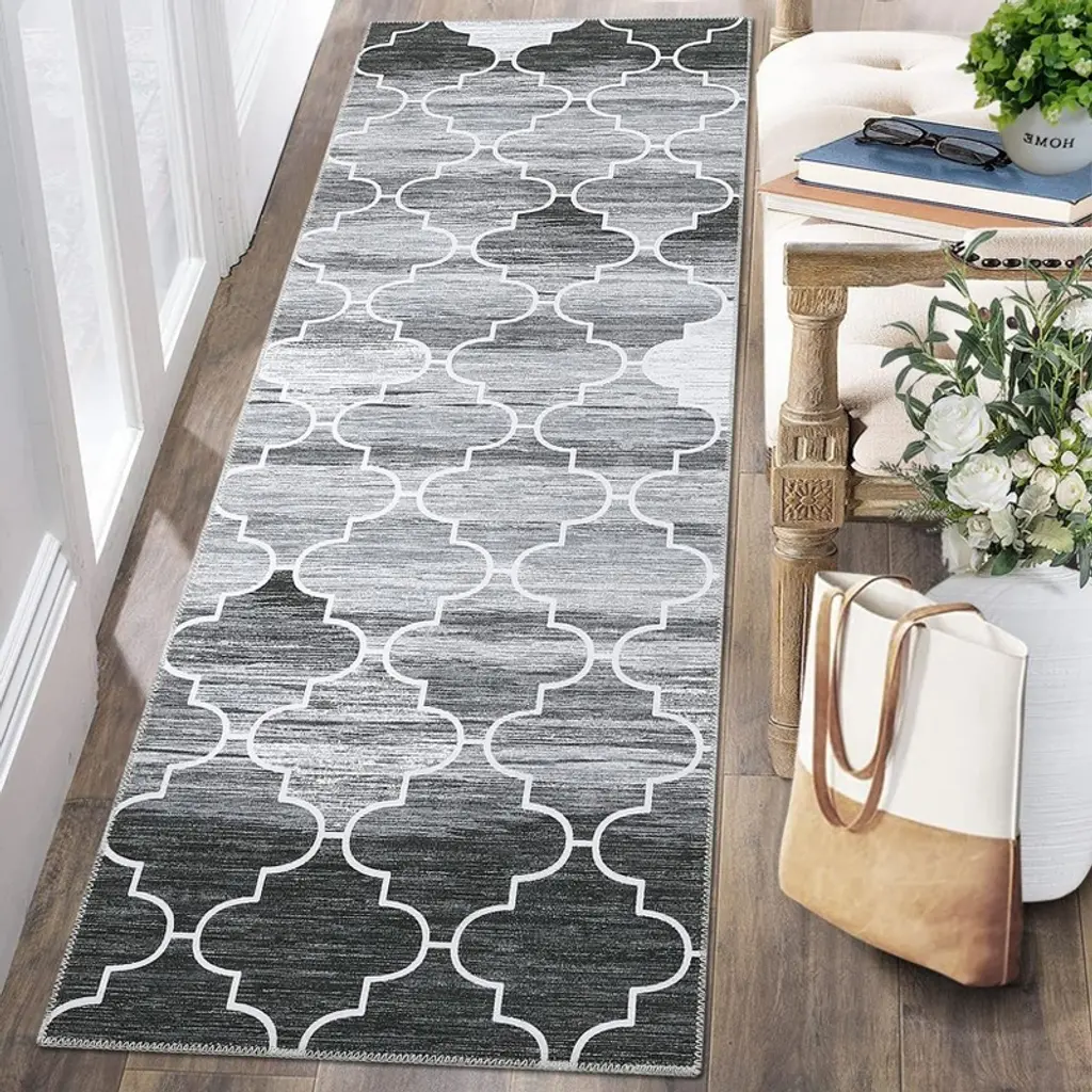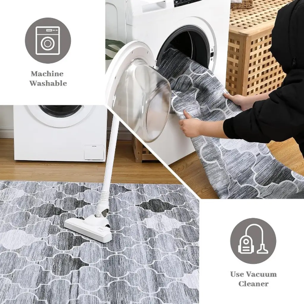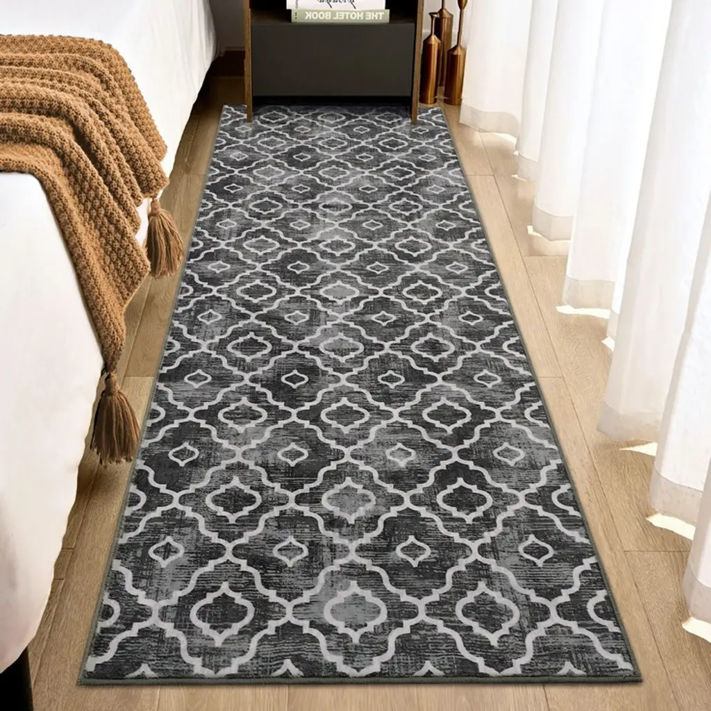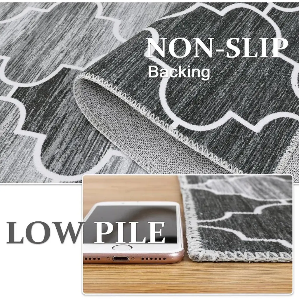 The Acekool Kitchen Runner combines practical design with everyday functionality. Its washable construction and non-slip backing make it ideal for busy households. Features include stain-resistant fibers, crease-free laying, and a comfortable low profile. The understated geometric pattern adds subtle style to functional spaces. Measures 24"x72" with a 0.25" pile height. Works on all indoor flooring types. The grey colorway coordinates with most existing decor schemes.