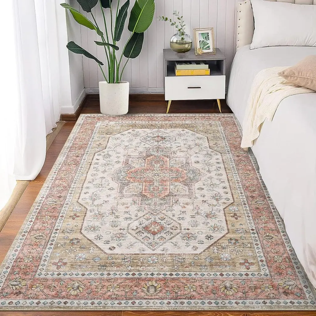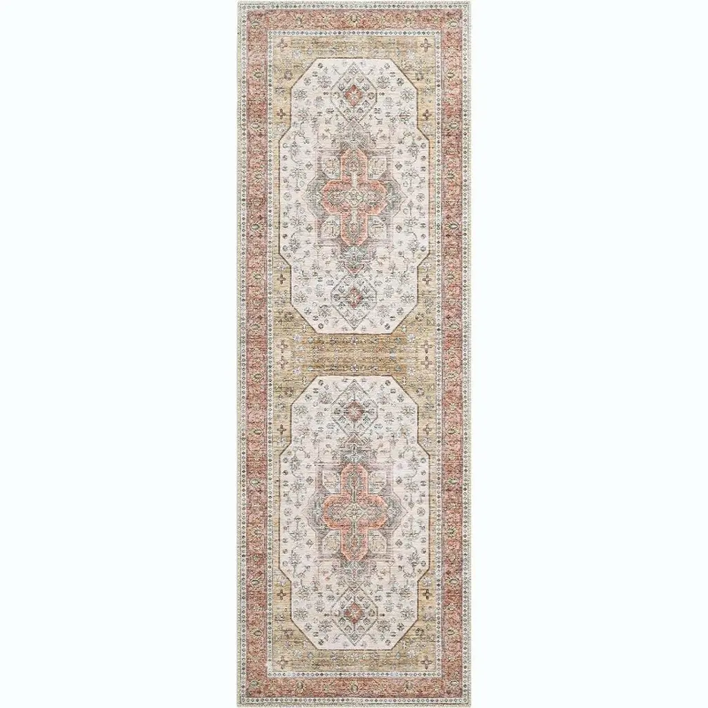 The Acekool Floral Runner blends vintage charm with everyday practicality. Its machine-washable construction makes maintenance simple while the floral design adds character to your space. Highlights include the secure non-slip backing, fade-resistant printing, and multiple size options. The neutral beige colorway coordinates with most color schemes. Measures 24" x 72" with a 0.3" pile height. Safe for use on all indoor floor types. The polyester fibers maintain their shape through regular use and cleaning.