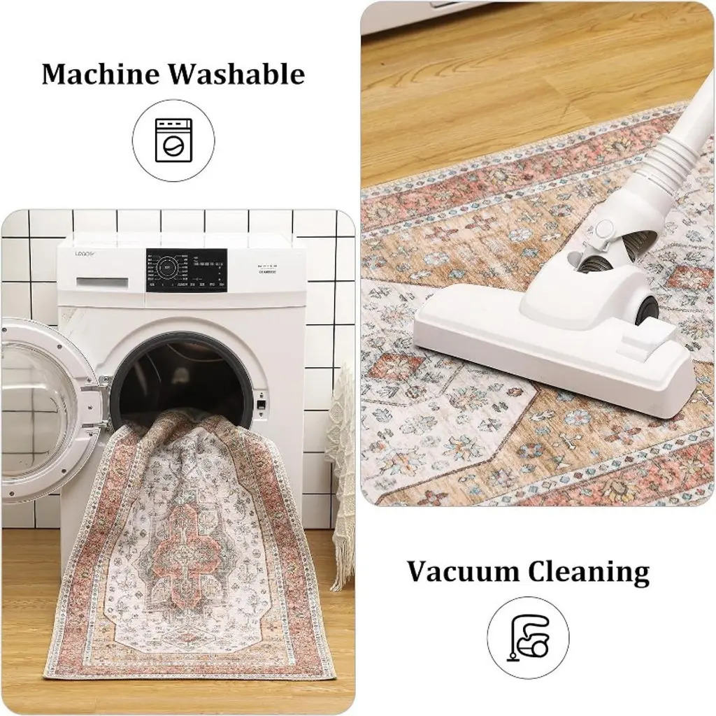 Acekool Floral Runner Rug - Washable 2X6 Boho Carpet With Non-slip Backing