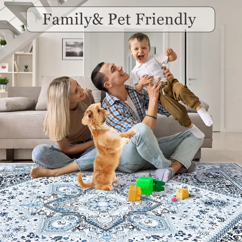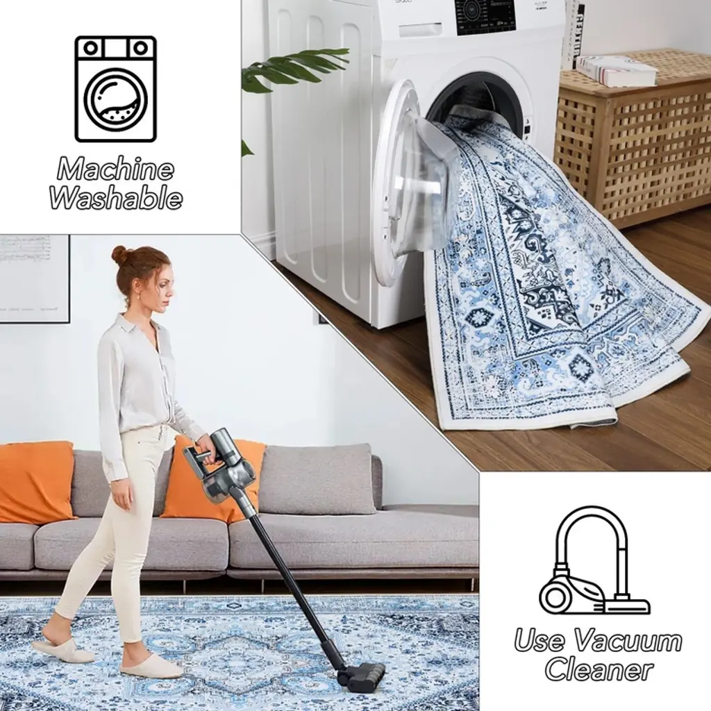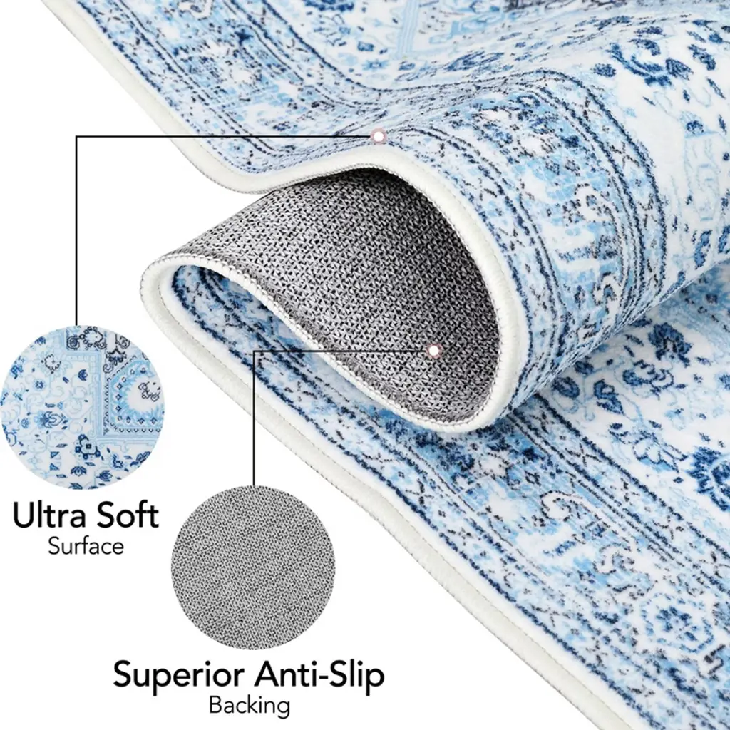 The Acekool Washable Runner & Area Rug combines vintage charm with modern convenience to refresh your home’s look. With a soft low-pile surface and elegant oriental floral pattern, it enhances any space from hallways to bedrooms and kitchens. This rug features an upgraded TPR non-slip backing to keep it secure on hard floors, supporting safe movement throughout busy areas. Its stain-resistant fabric and machine washable design make for hassle-free maintenance in active households. Available in several sizes and colors, the rug easily fits your space and style needs. Unfold and smooth it out upon arrival, and enjoy a cozy, stylish floor covering that adapts to your home. Specifications: Sizes Available: 2x6, 4x6, 5x7, 9x12 feet Colors: Pink, Blue, Gray Design: Distressed oriental floral vintage pattern Backing: Non-slip TPR Pile Height: Low pile, soft texture Care: Machine washable, stain-resistant Use: Indoor – hallway, bedroom, kitchen, bathroom, nursery