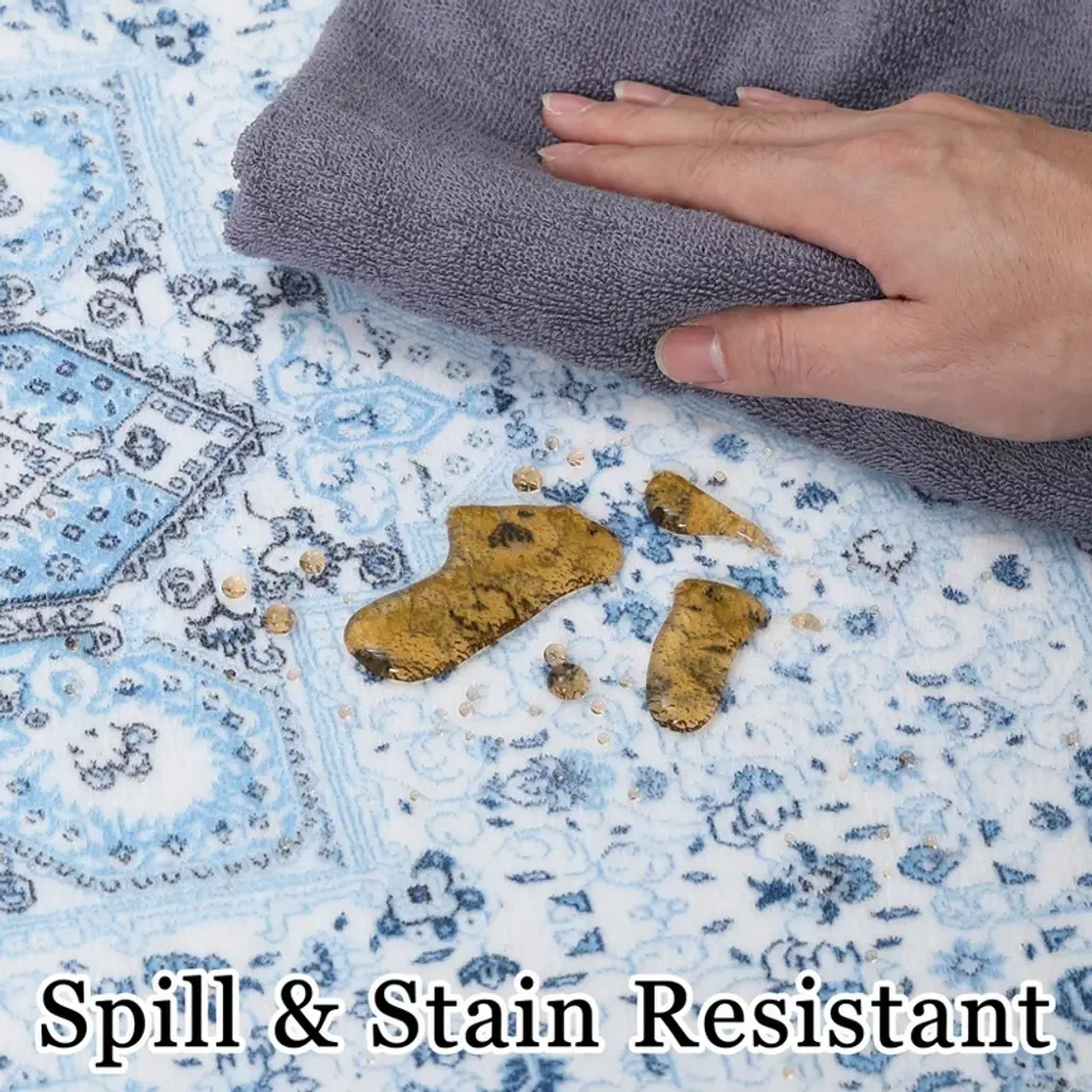 Acekool Washable Runner Rug 2X6, Low-pile Oriental Floral Vintage Design, Non-skid, Soft Carpet For Hallway, Bedroom, Kitchen – Blue