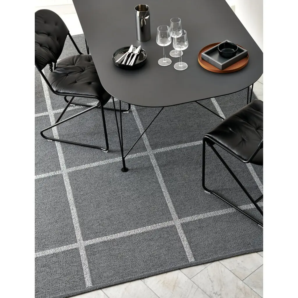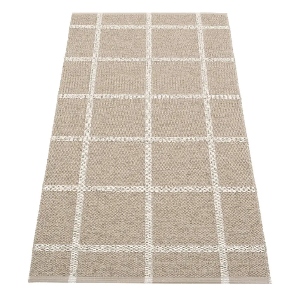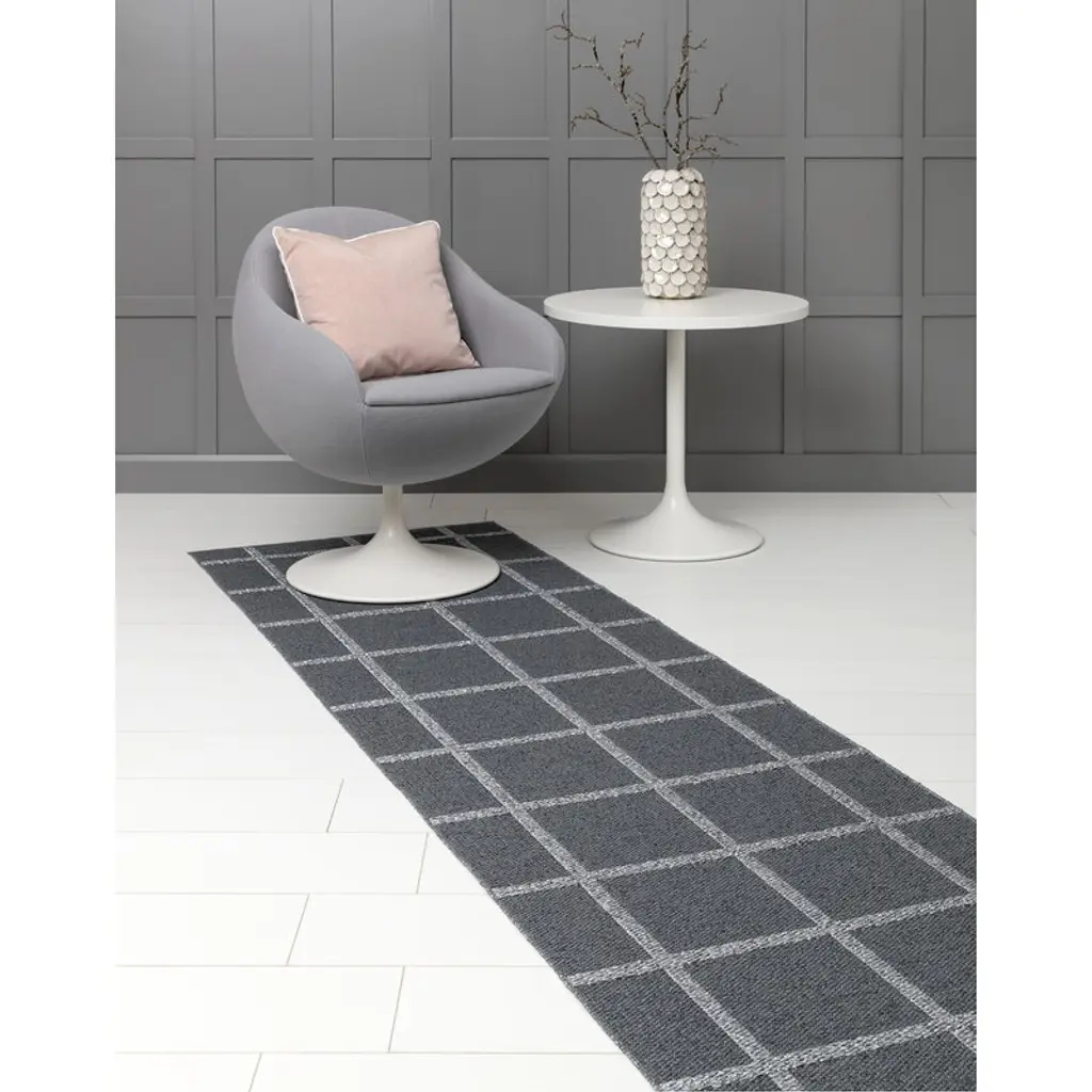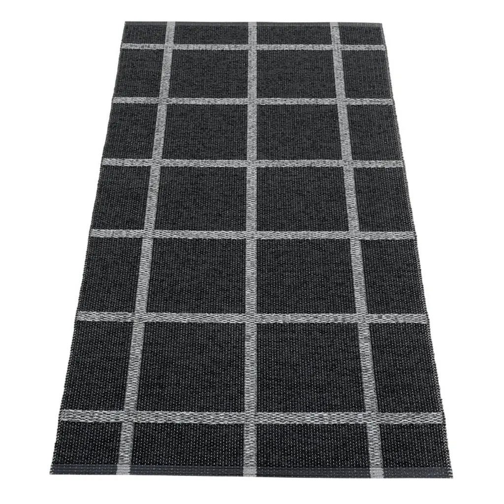 The Ada rug by the Swedish Pappelina is decorated with a metallic grid pattern. The rug’s edges are reinforced and welded, making them extremely durable. Made of phthalate-free PVC ribbon, the rug is very easy to clean, making it a practical choice for all spaces from the kids' room to the kitchen. Due to its narrow form, the rug is also an ideal hallway runner, and it can even be used outdoors on the balcony, veranda or patio. Made in Dalarna, Sweden, the rug has been woven using traditional techniques and it is available in several colourways.