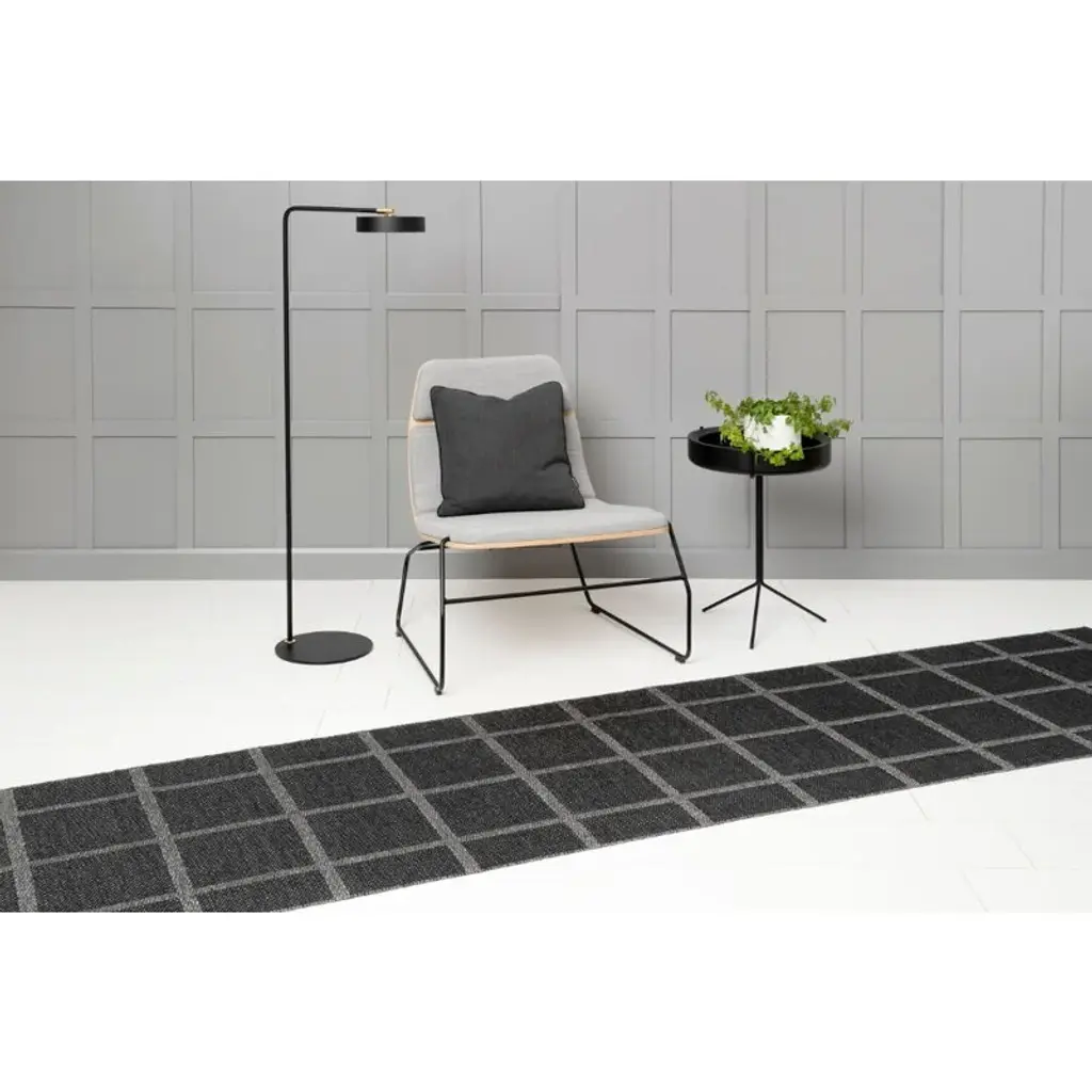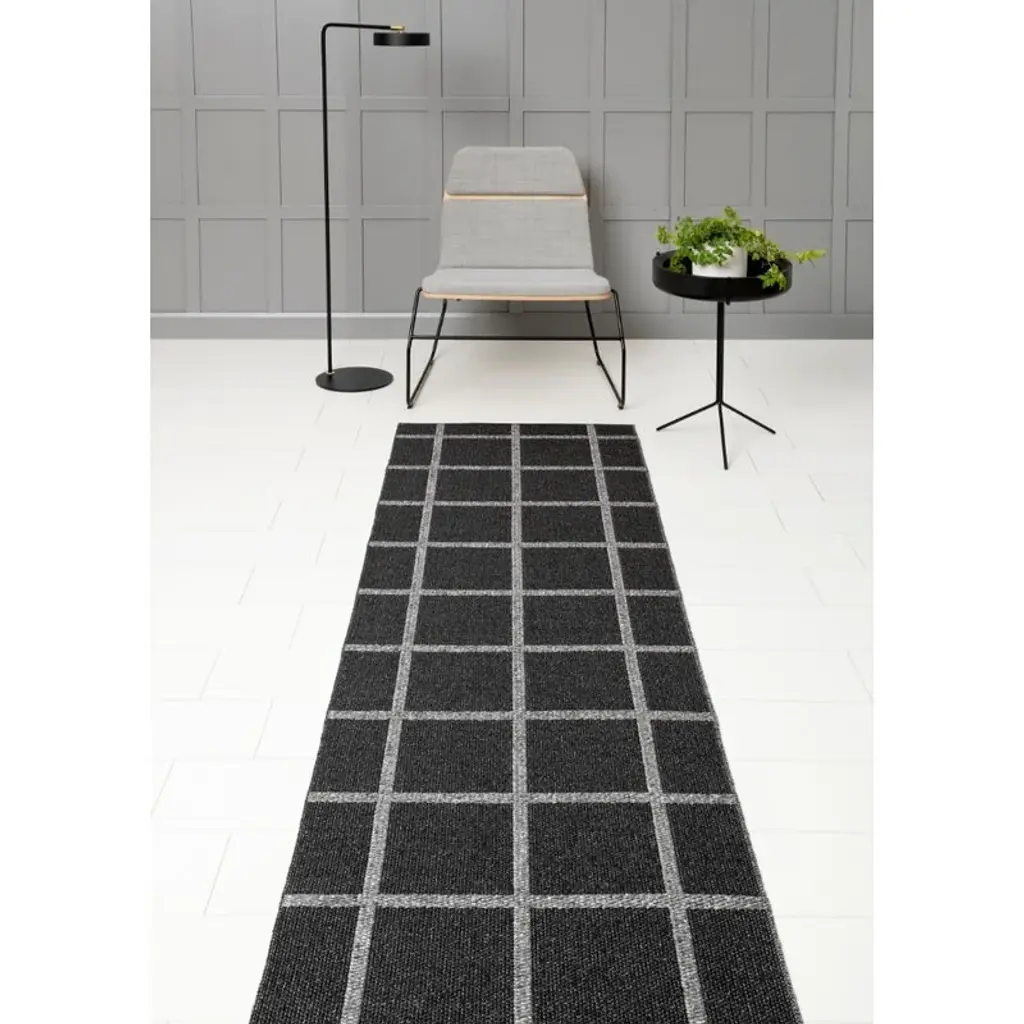 The Ada rug by the Swedish Pappelina is decorated with a metallic grid pattern. The rug’s edges are reinforced and welded, making them extremely durable. Made of phthalate-free PVC ribbon, the rug is very easy to clean, making it a practical choice for all spaces from the kids' room to the kitchen. Due to its narrow form, the rug is also an ideal hallway runner, and it can even be used outdoors on the balcony, veranda or patio. Made in Dalarna, Sweden, the rug has been woven using traditional techniques and it is available in several colourways.