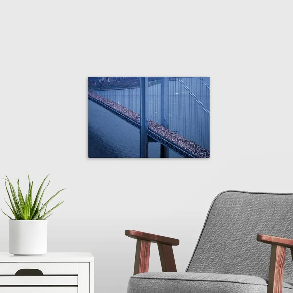 Aerial view of runners in the 1994 New York City Marathon wall art for home and office decor. Discover canvas art prints, photos, mural, big canvas art and framed wall art in GreatBigCanvas.com's varied collections.