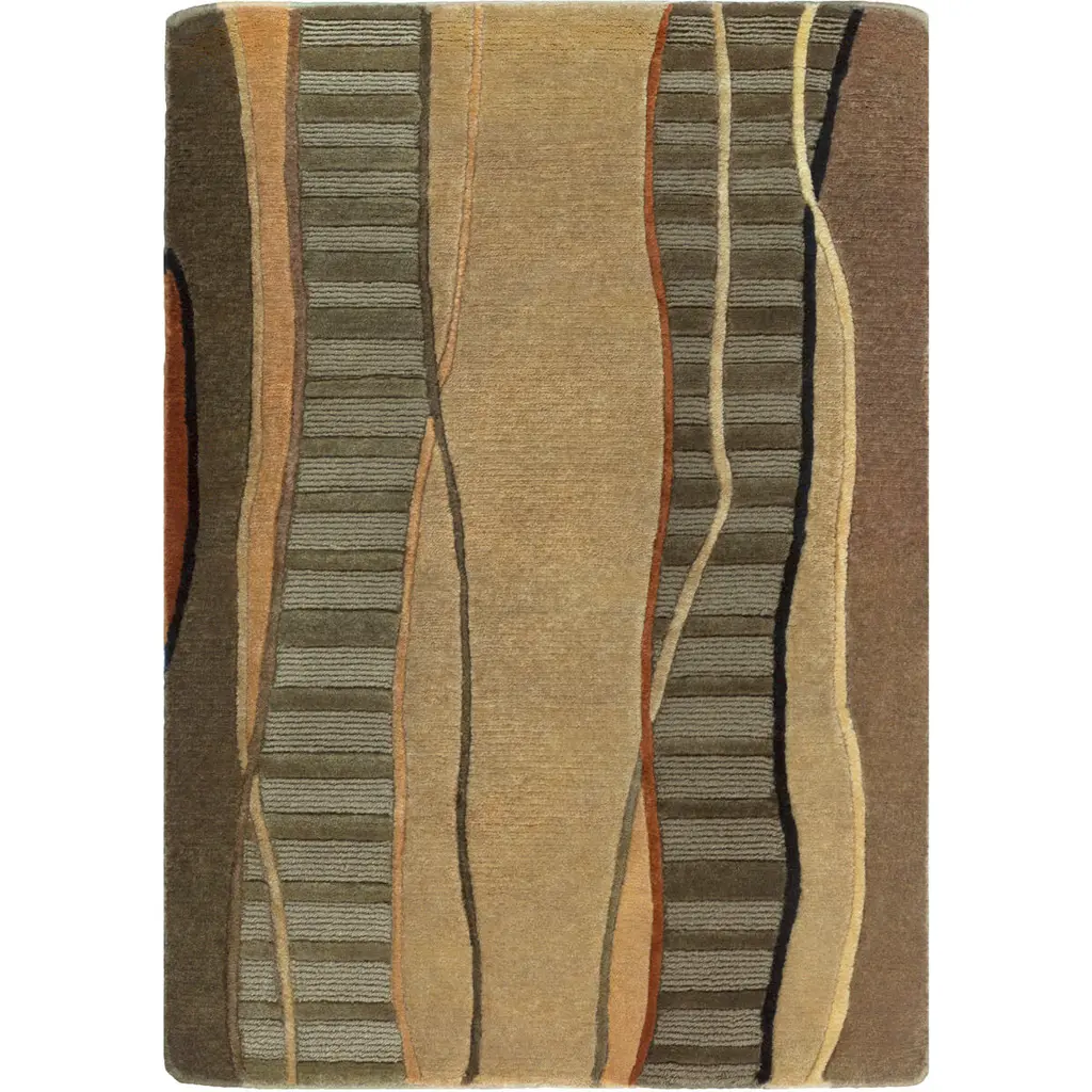 Collection: Alanreed Colors: Dark Brown, Sage Construction: Hand Knotted Material: 100% Wool Pile: Medium Pile Pile Height: 0.31" Styles: Contemporary Made In: India Thickness: 0.39" Price Range: $$$$$ (Affordable)