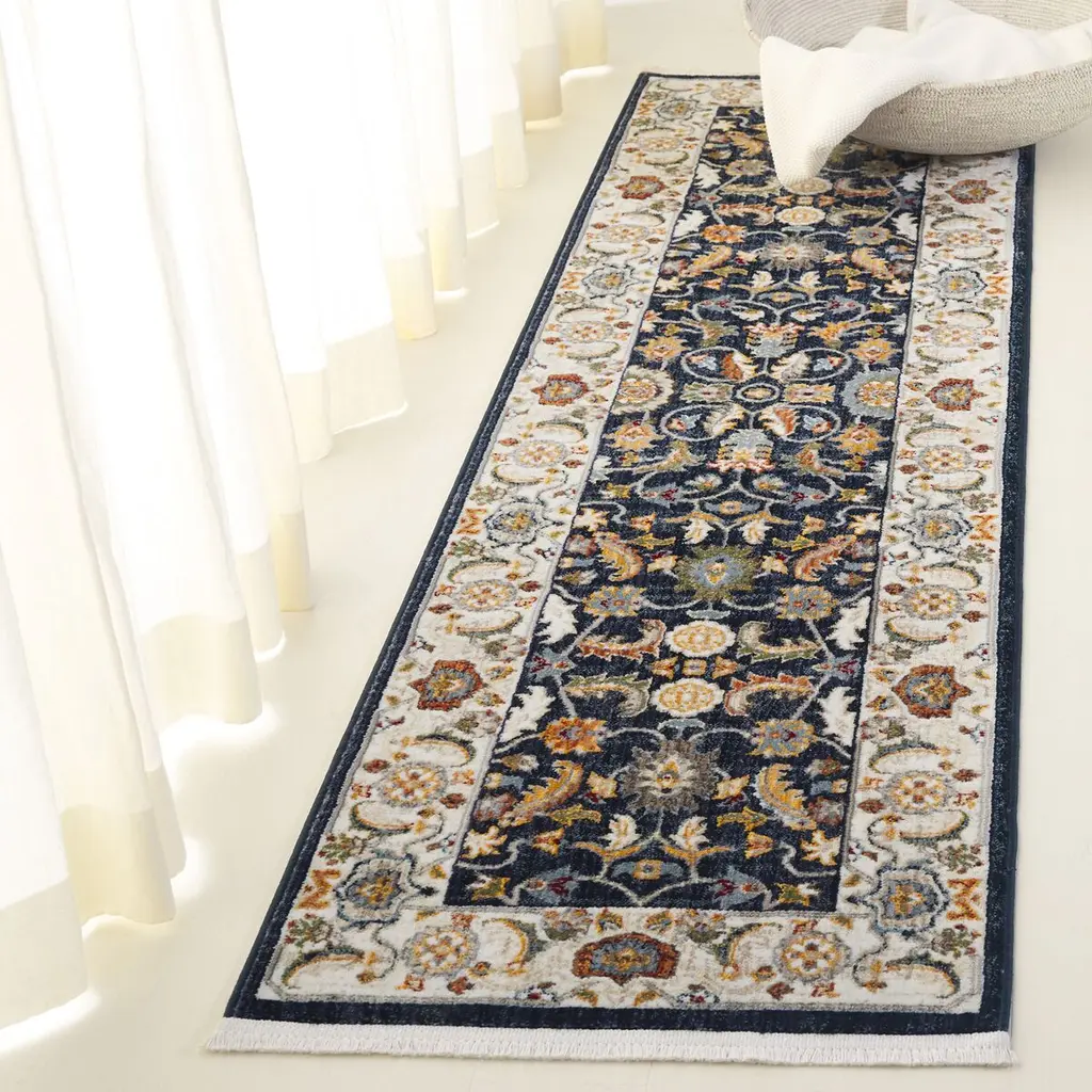 Introducing our exquisite 2'-6" X 8' Runner Area Rug in an enchanting Ivory/Rust palette, designed to elevate the elegance of your home. This transitional-style runner is meticulously crafted in Turkey using a power-loomed technique, which ensures a blend of durability and fine detail in every inch. Constructed of a superior quality combination of 65% Polypropylene, 30% Cotton, and 5% Polyester, this rug is not only soft to the touch but also capable of withstanding the rigors of high-traffic areas. With a comfortable pile height of 3/8", it provides a plush feel underfoot without compromising on the ease of maintenance. Our runner's pattern, as displayed in the image, showcases a harmonious mix of florals and ornamental designs, reminiscent of classic motifs yet with a fresh, modern twist. This striking design is framed by an equally stunning border, creating a cohesive look that will complement both traditional and contemporary decor. Safety and environmental accountability are also at the forefront of our priorities. That's why we're proud to announce that this area rug is OEKO-TEX certified, meaning it has been tested and verified as free from harmful levels of more than 100 substances known to be detrimental to human health. Whether you're gracing your hallway, entryway, or elongated living space with this runner, it will be a testament to your sophisticated tastes and commitment to quality. Make this Ivory/Rust runner area rug the